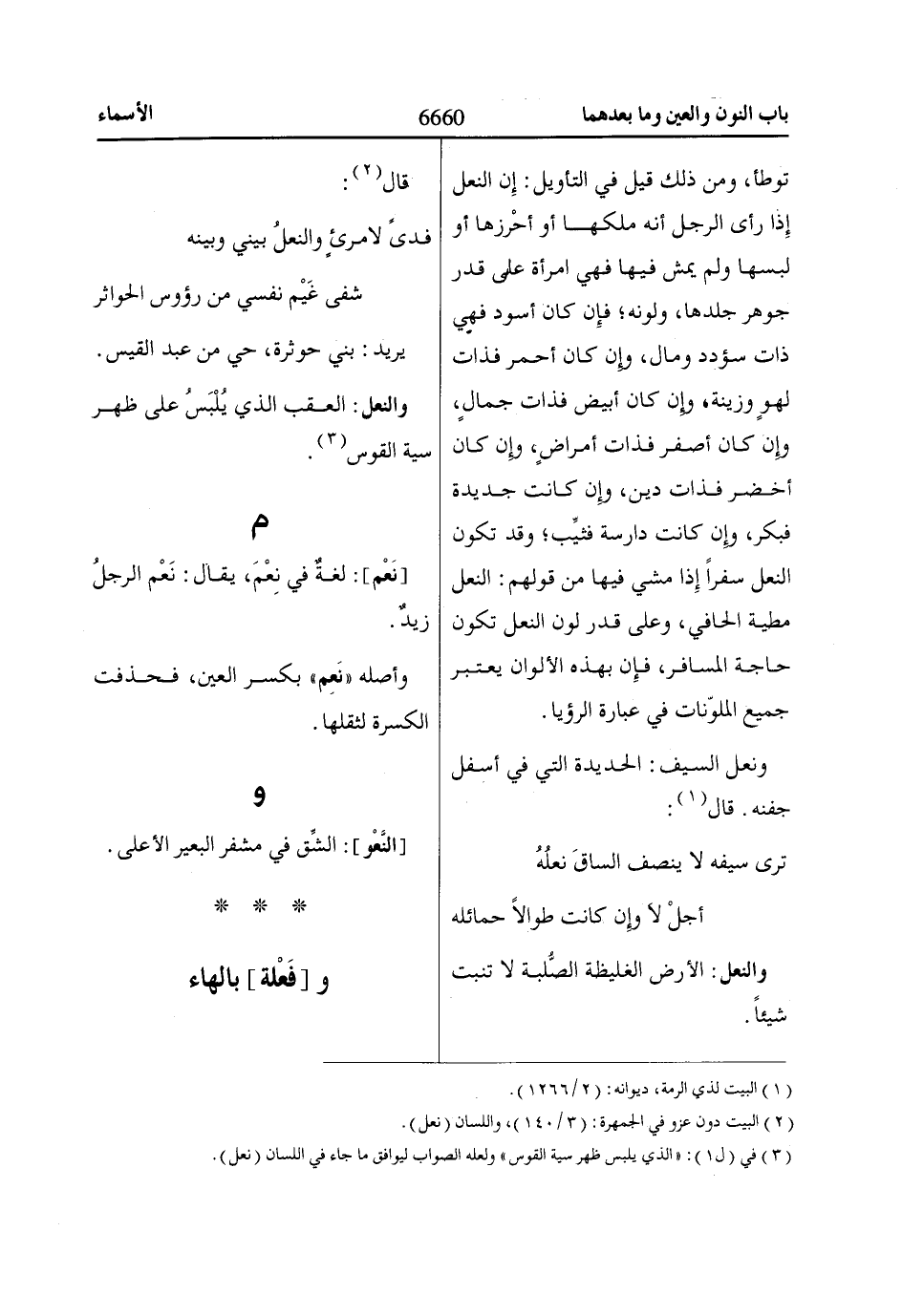 (2) البيت دون عزو في الجمهرة: (3/ 140)، واللسان (نعل).