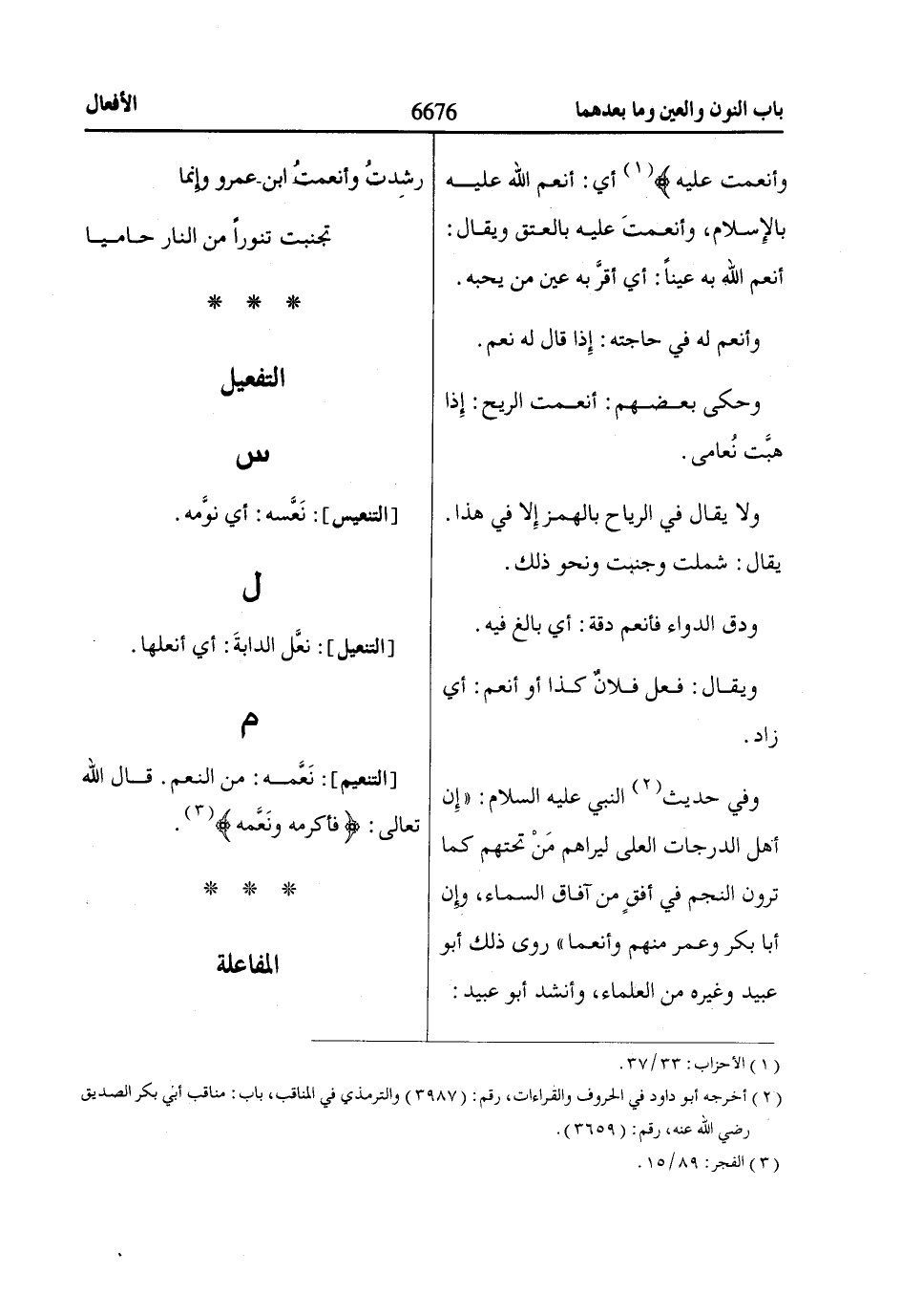 وَأَنْعَمْتَ عَلَيْهِ «1» أي: أنعم اللّاه عليه بالإِسلام، وأنعمتَ عليه بالعتق ويقال:
