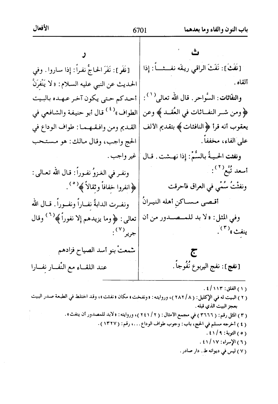 ونفرت الدابةُ نِفاراً ونفوراً. قال اللّاه تعالى: وَماا يَزِيدُهُمْ إِلّاا نُفُوراً «6» وقال جرير «7»: