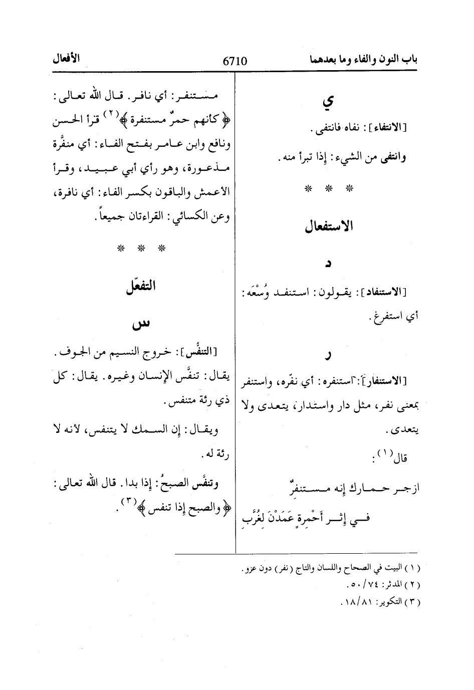 (1) البيت في الصحاح واللسان والتاج (نفر) دون عزو.