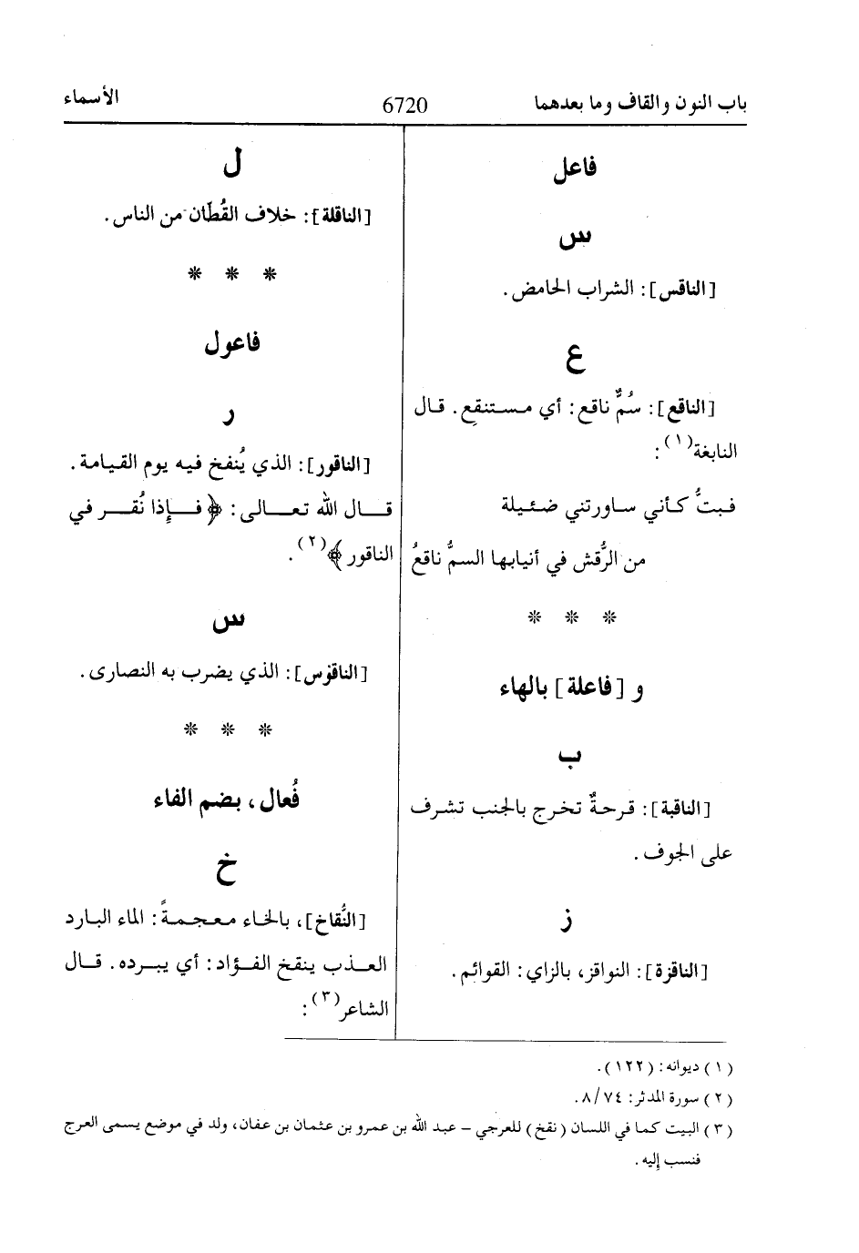 (3) البيت كما في اللسان (نقخ) للعرجي- عبد اللّاه بن عمرو بن عثمان بن عفان، ولد في موضع يسمى العرج فنسب إِليه.