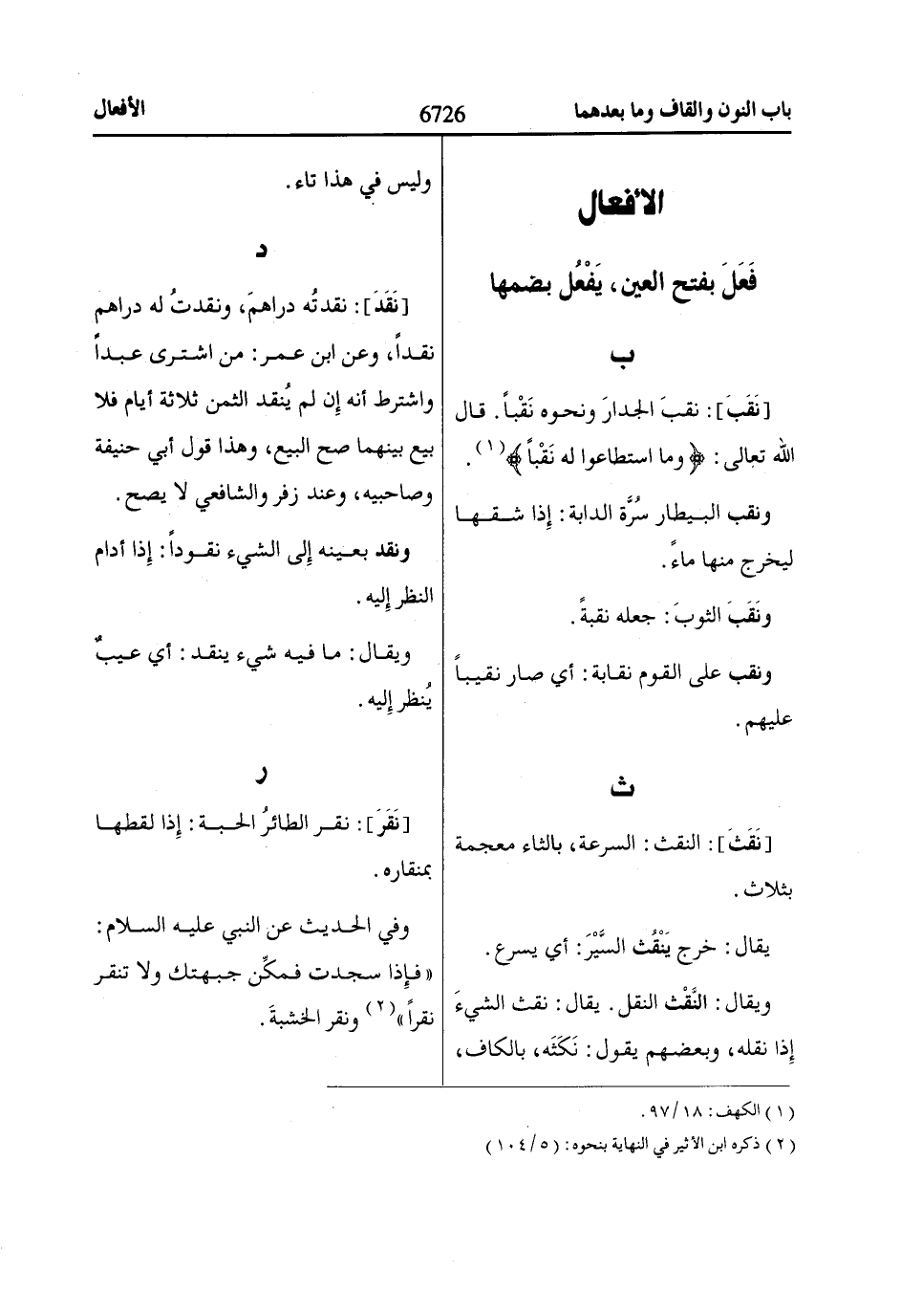 [نَقَبَ]: نقبَ الجدارَ ونحوه نَقْباً. قال اللّاه تعالى: وَمَا اسْتَطااعُوا لَهُ نَقْباً «1».
