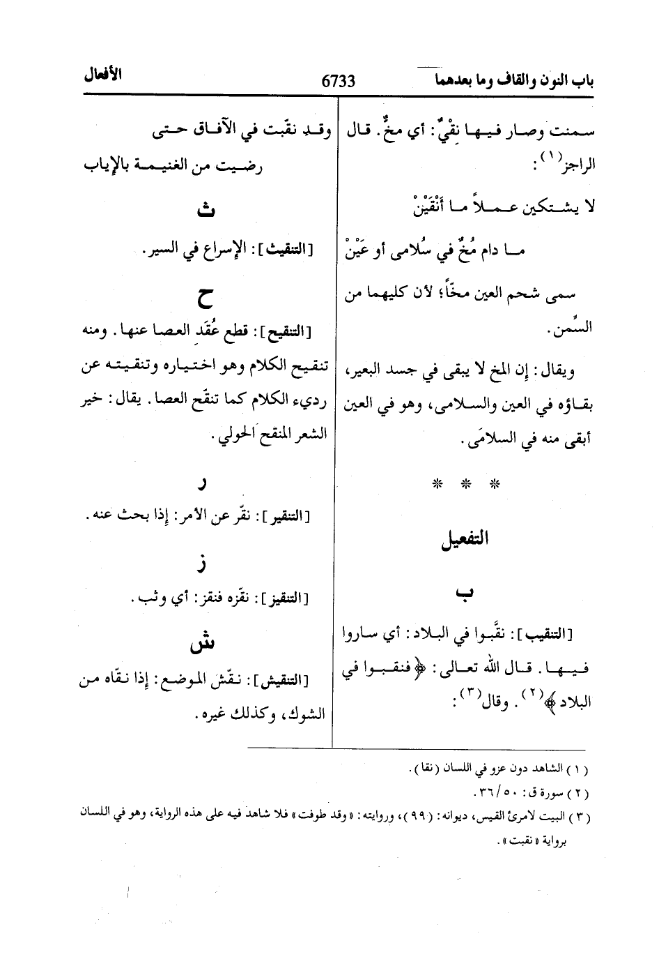 [التنقيب]: نقَّبوا في البلاد: أي ساروا فيها. قال اللّاه تعالى: فَنَقَّبُوا فِي الْبِلاادِ «2». وقال «3»:
