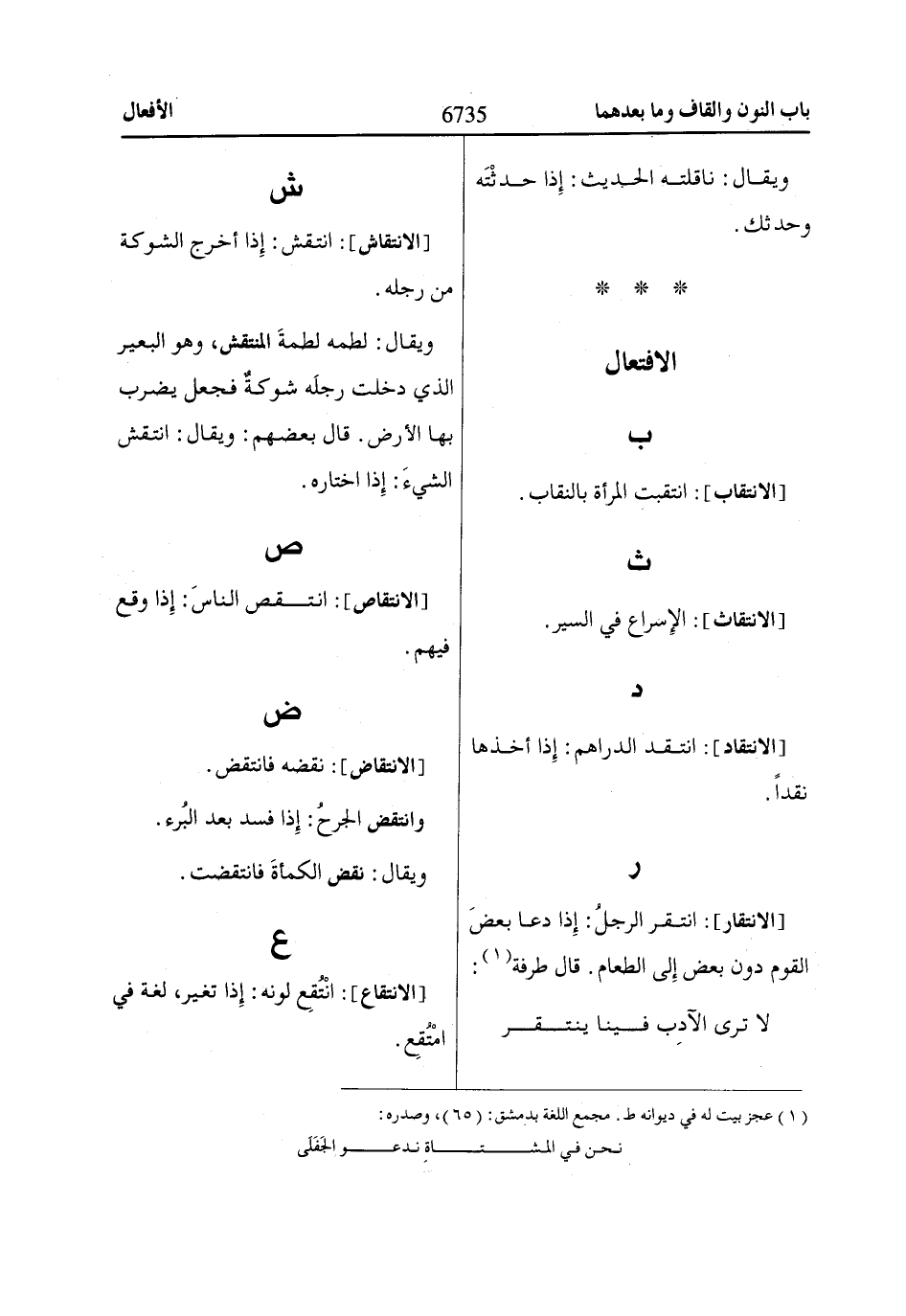 [الانتقاش]: انتقش: إِذا أخرج الشوكة من رجله.