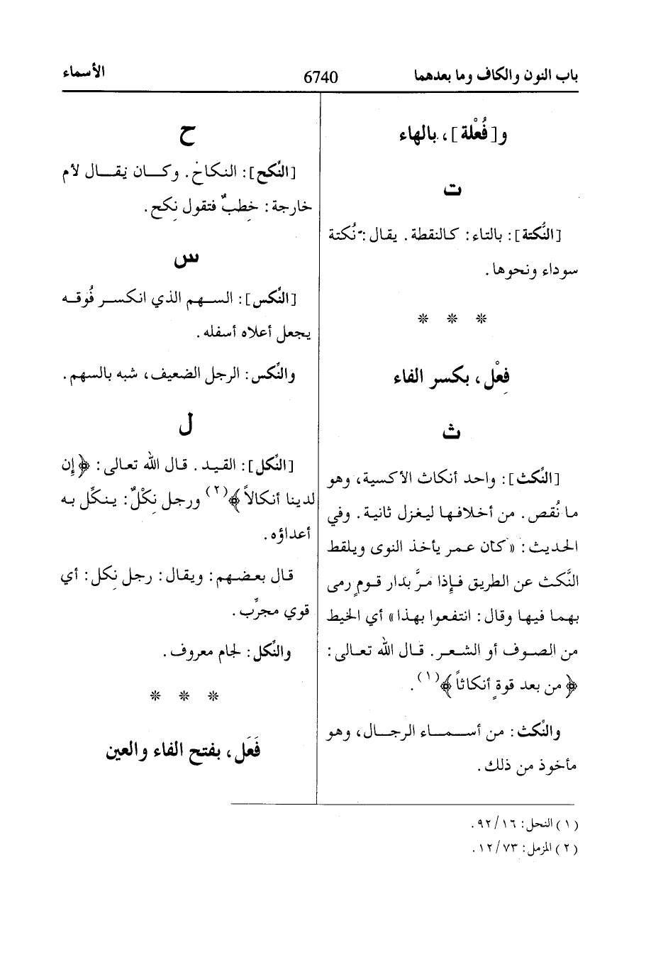 [النِّكث]: واحد أنكاث الأكسية، وهو ما نُقص. من أخلافها ليغزل ثانية.