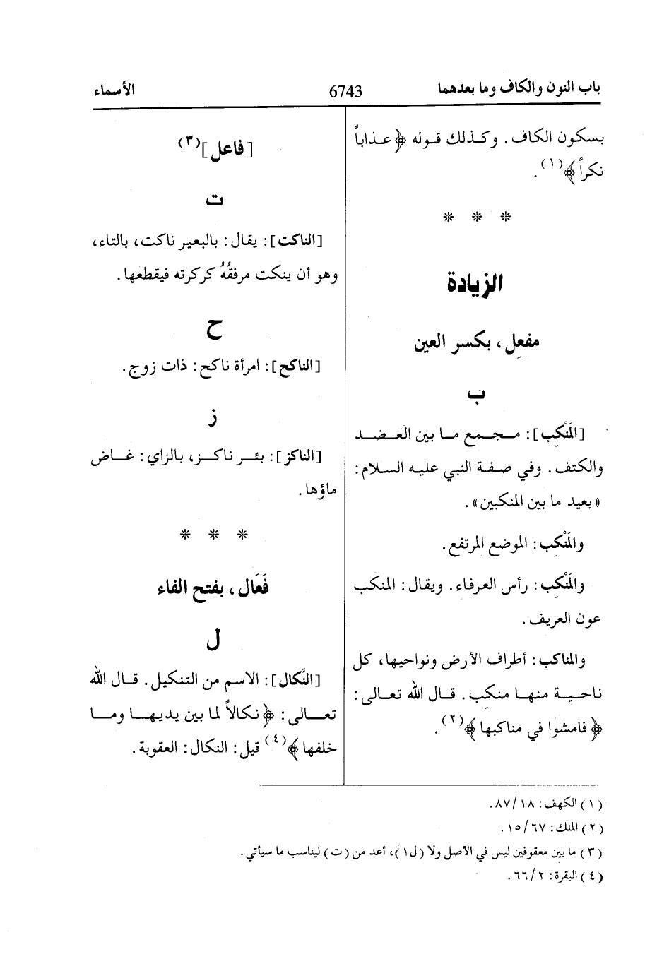 [النَّكال]: الاسم من التنكيل. قال اللّاه تعالى: نَكاالًا لِماا بَيْنَ يَدَيْهاا وَماا خَلْفَهاا «4» قيل: النكال: العقوبة.
