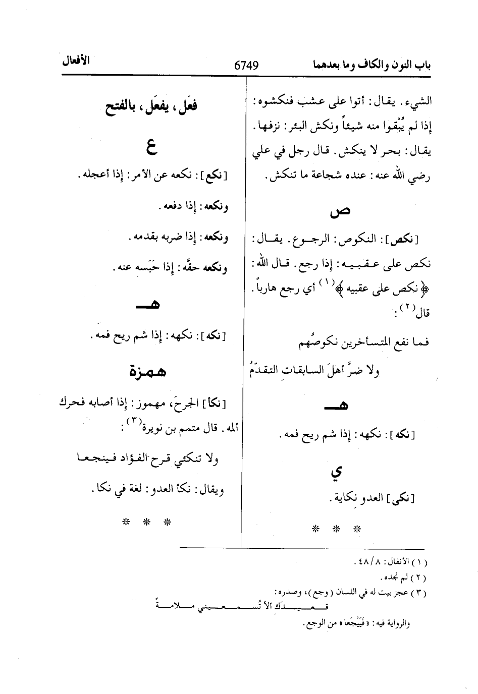 [نكأ] الجرحَ، مهموز: إِذا أصابه فحرك ألمه. قال متمم بن نويرة «3»: