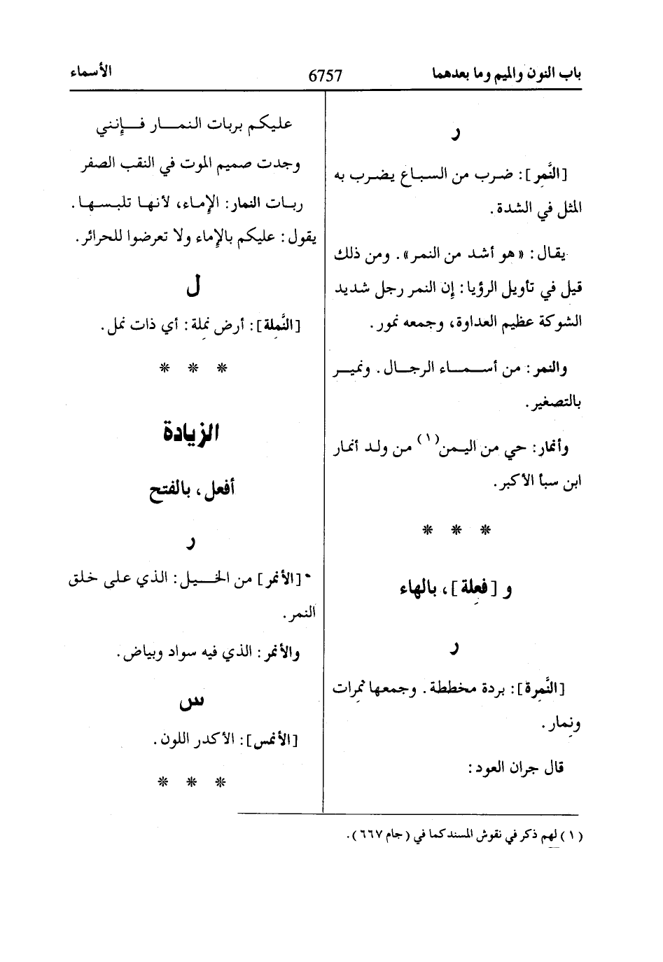 [النَّمِرة]: بردة مخططة. وجمعها نمِرات ونِمار.