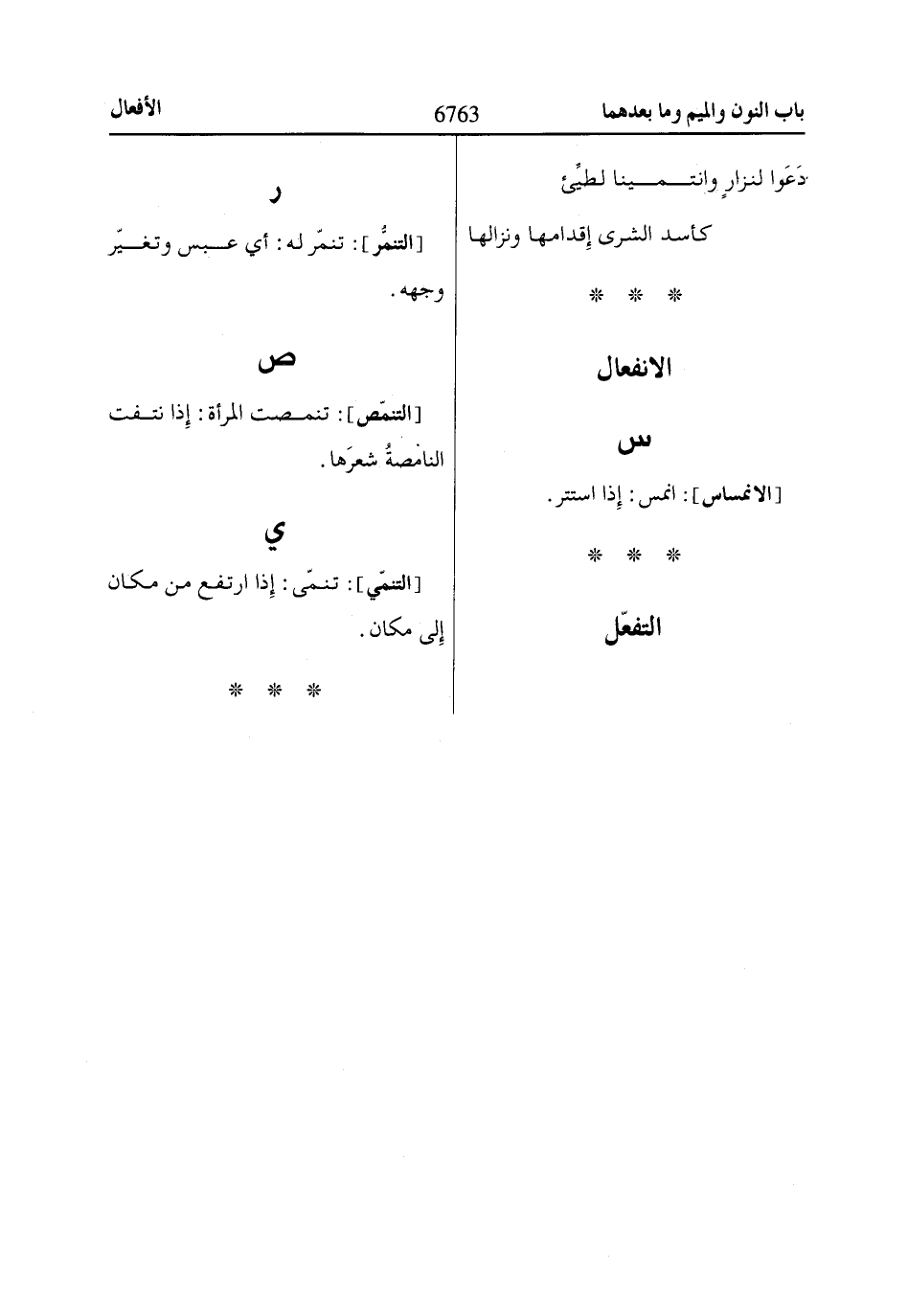 [التنمُّر]: تنمّر له: أي عبس وتغيّر وجهه.