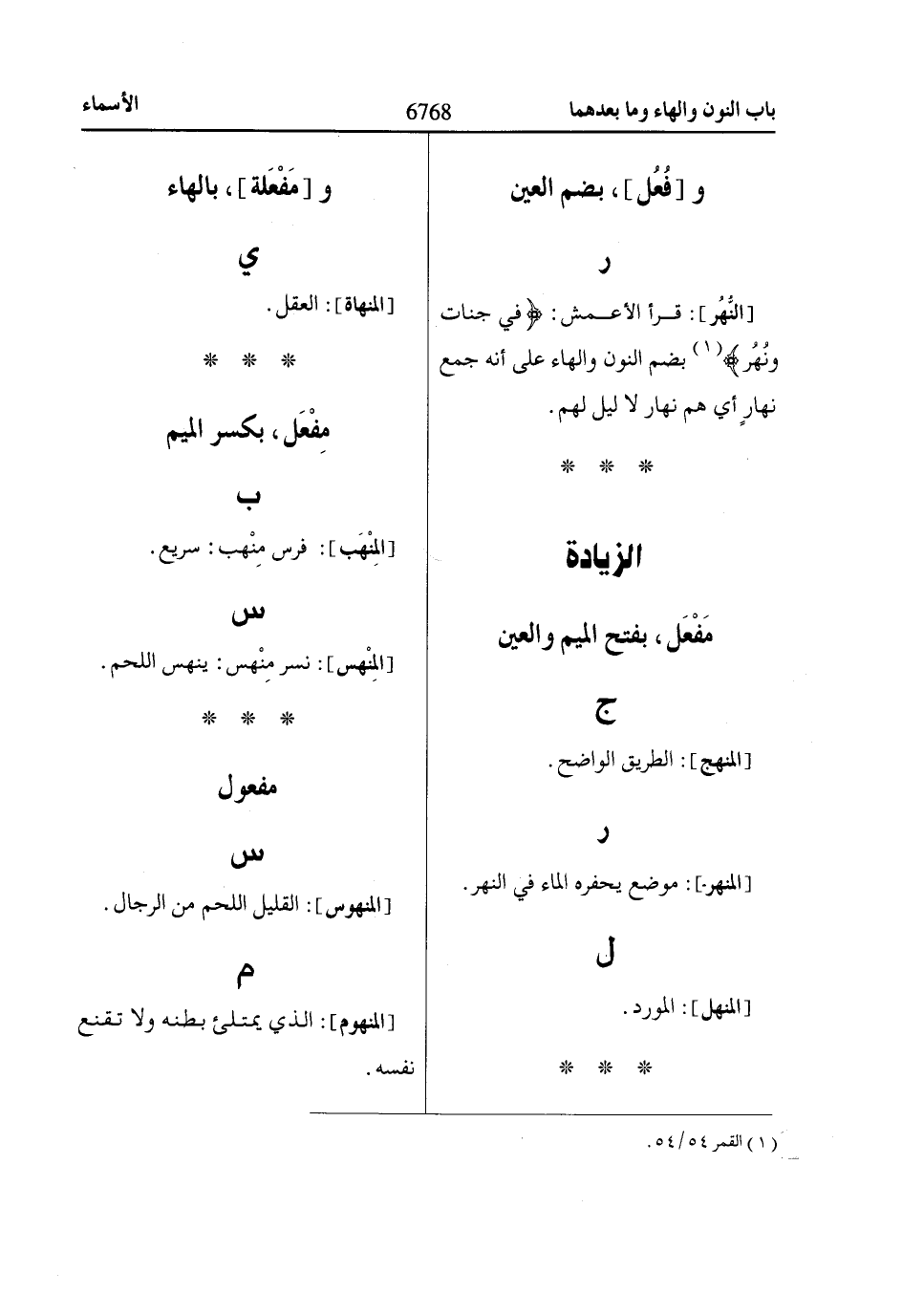 [النُّهُر]: قرأ الأعمش: في جنات ونُهُر «1» بضم النون والهاء على أنه جمع نهارٍ أي هم نهار لا ليل لهم.