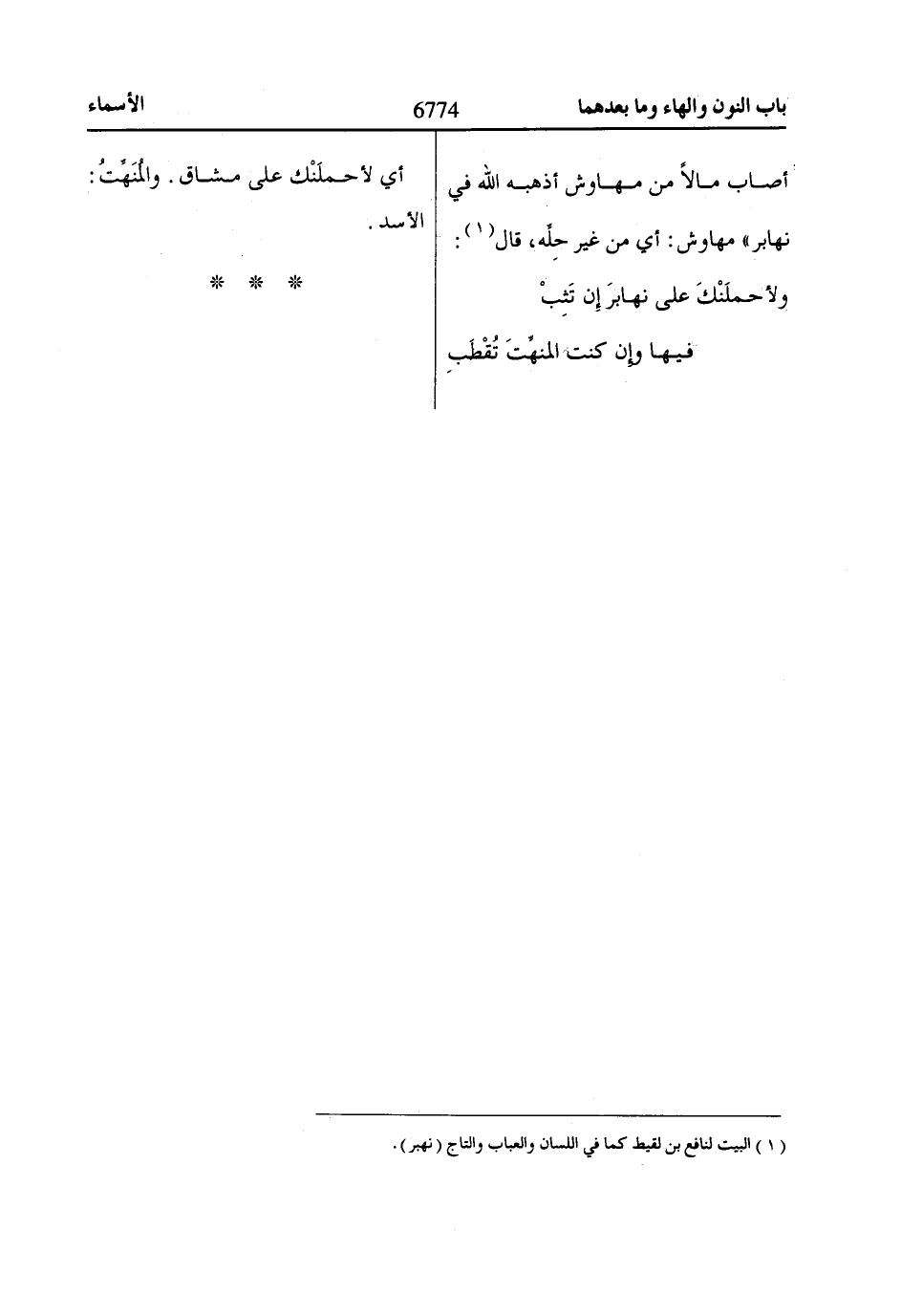 (1) البيت لنافع بن لقيط كما في اللسان والعباب والتاج (نهبر).
