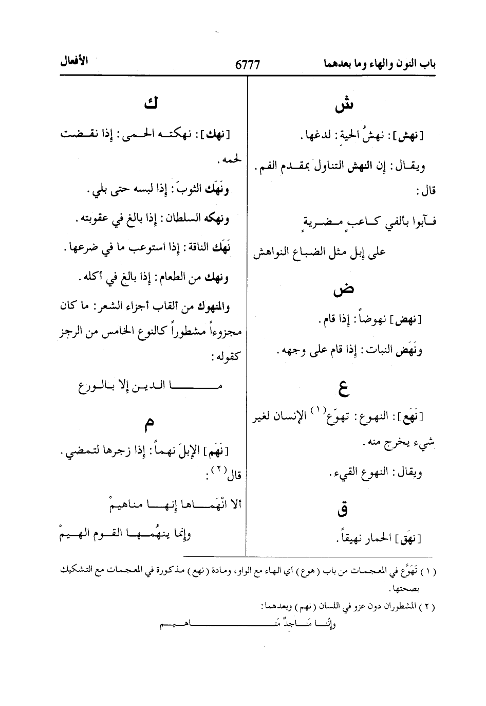 (1) تَهَوَّع في المعجمات من باب (هوع) أي الهاء مع الواو، ومادة (نهع) مذكورة في المعجمات مع التشكيك بصحتها.
