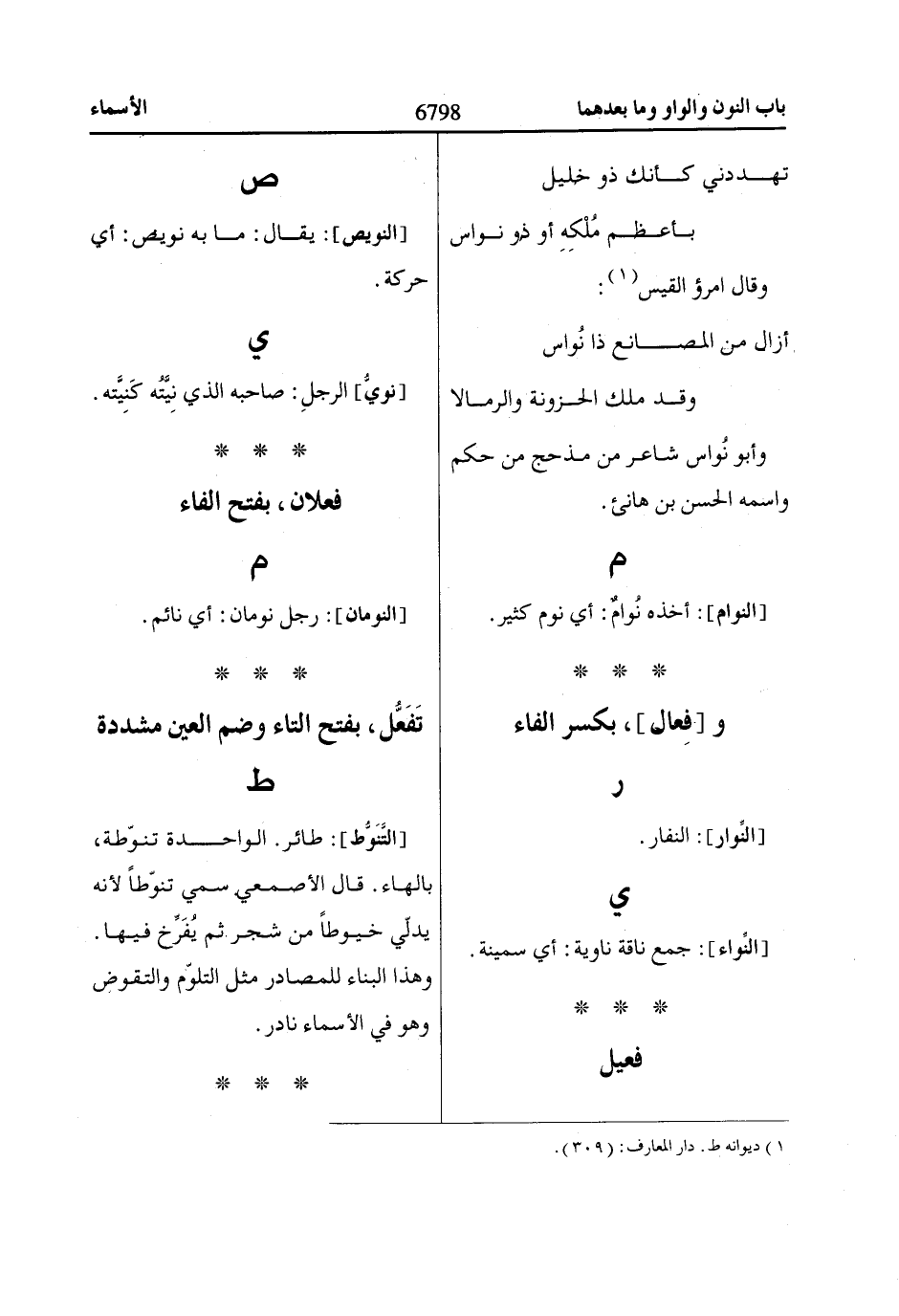 وهذا البناء للمصادر مثل التلوّم والتقوض وهو في الأسماء نادر.