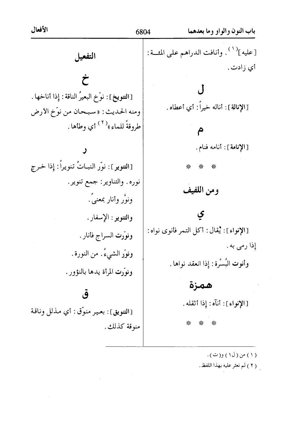 الحديث: «سبحان من نوّخ الأرض طروقةً للماء» «2»