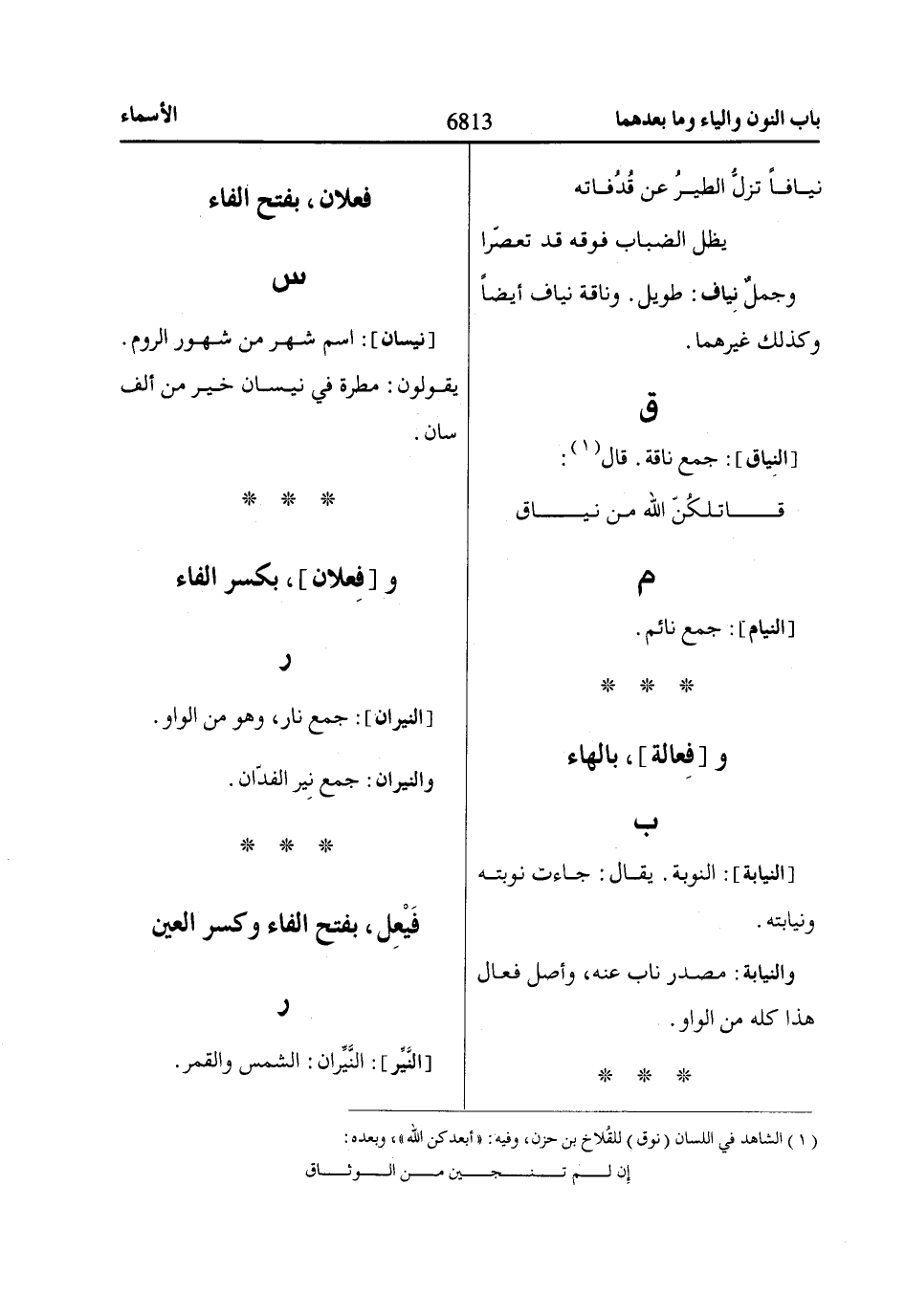 (1) الشاهد في اللسان (نوق) للقُلاخ بن حزن، وفيه: