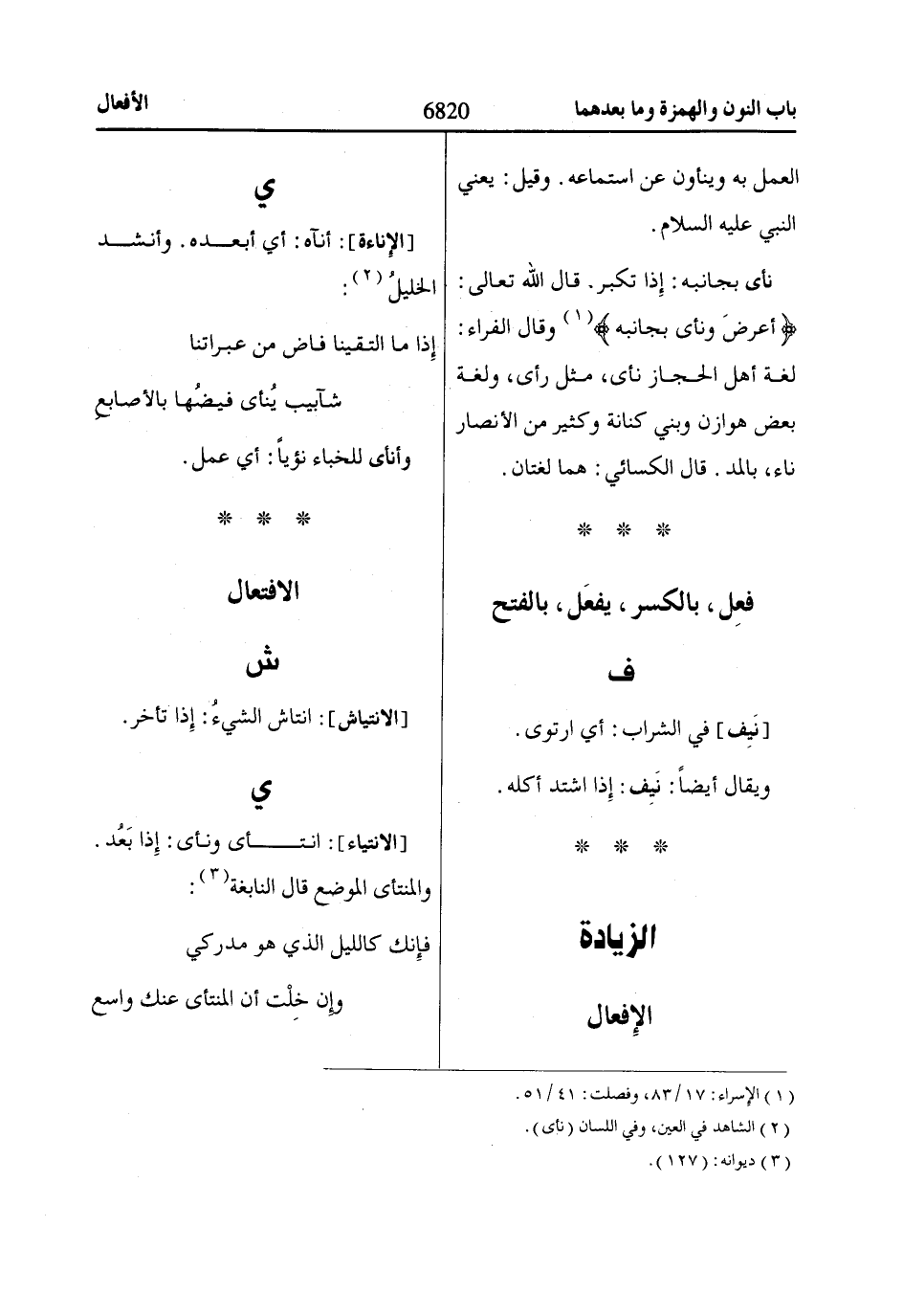 [الإِناءة]: أنآه: أي أبعده. وأنشد الخليلُ «2»: