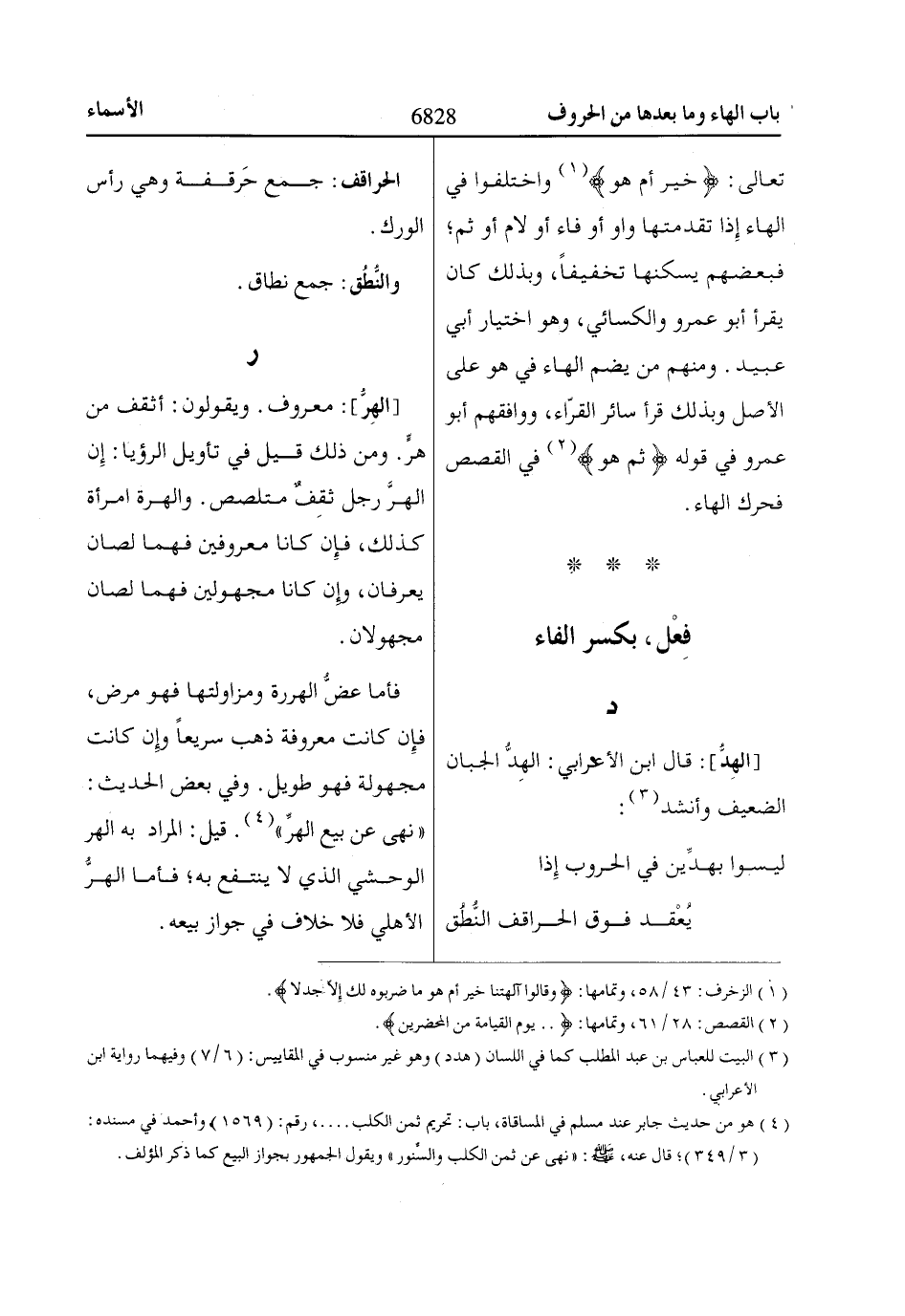 (3) البيت للعباس بن عبد المطلب كما في اللسان (هدد) وهو غير منسوب في المقاييس: (6/ 7) وفيهما رواية ابن الأعرابي.