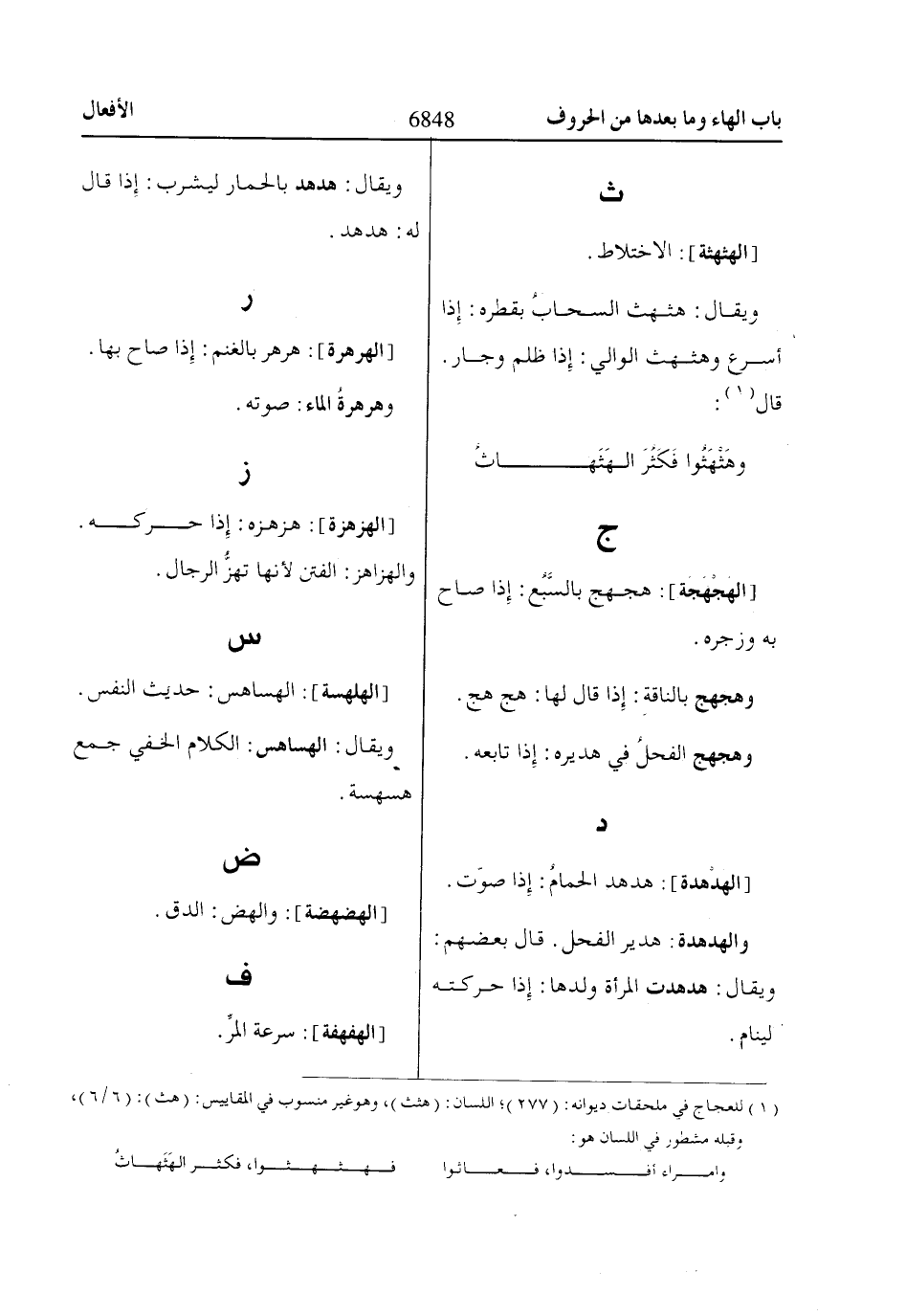 [الهمهيم]: حمار همهيم: كثيرِ الهمهمة. قال «2»: