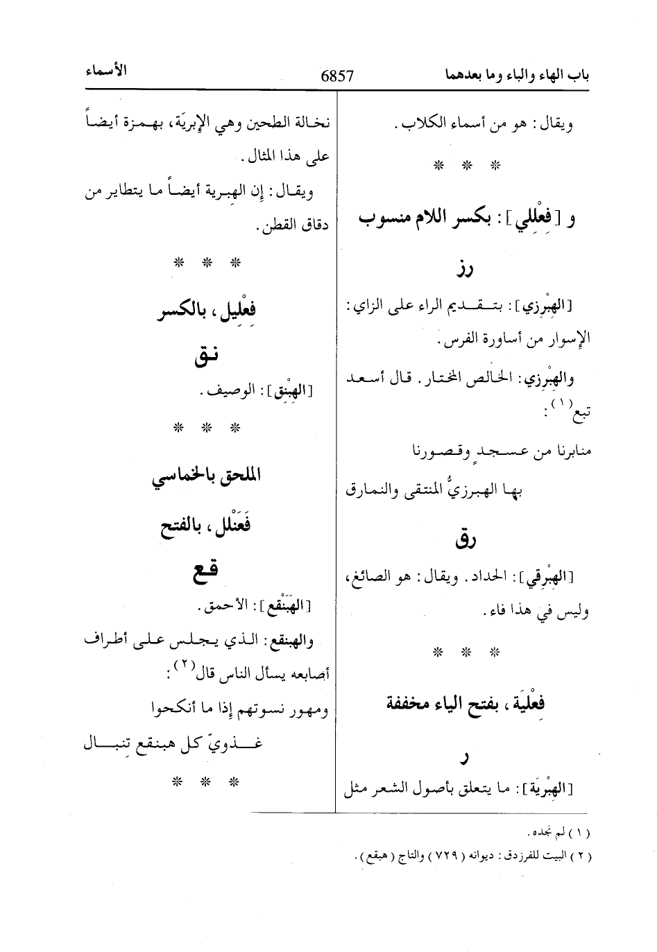 (2) البيت للفرزدق: ديوانه (729) والتاج (هبقع).