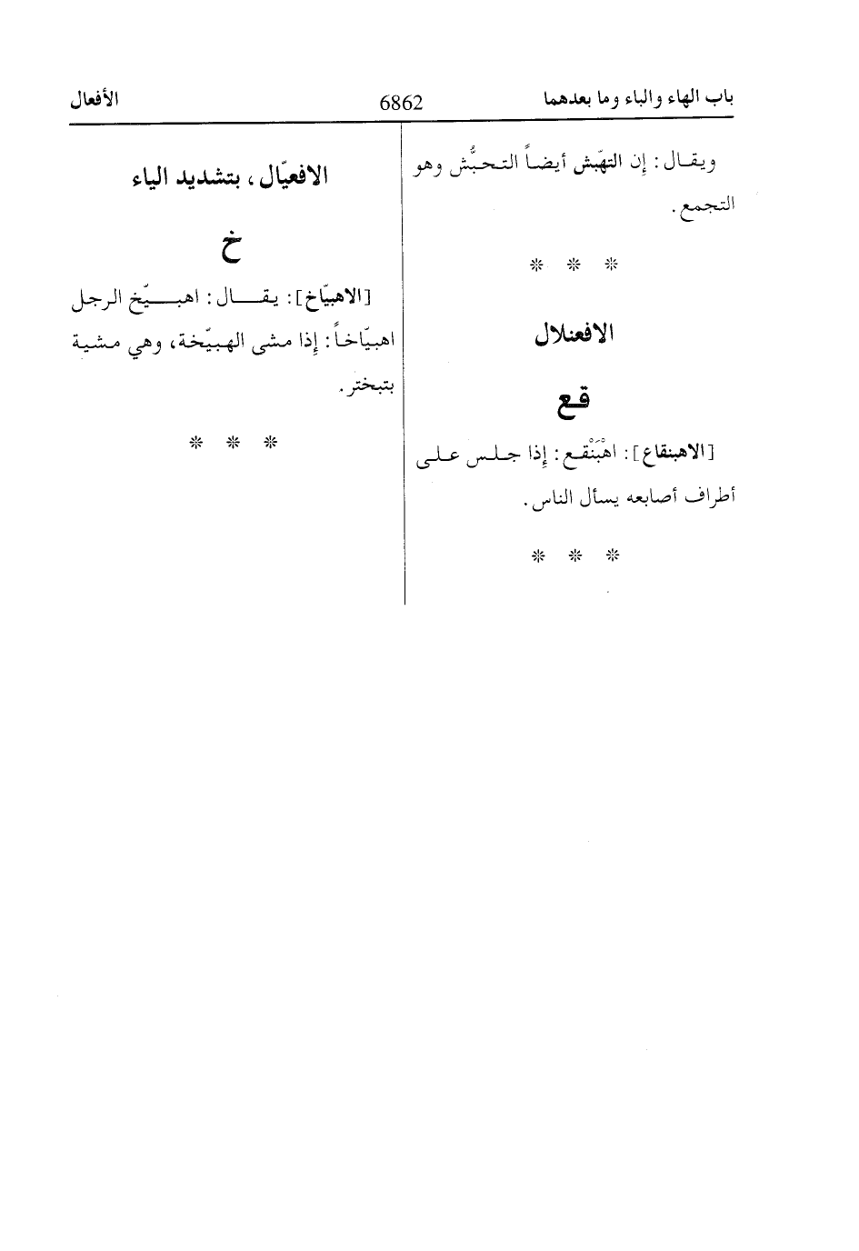 [الاهبيّاخ]: يقال: اهبيّخ الرجل اهبيّاخاً: إِذا مشى الهبيّخة، وهي مشية بتبختر.