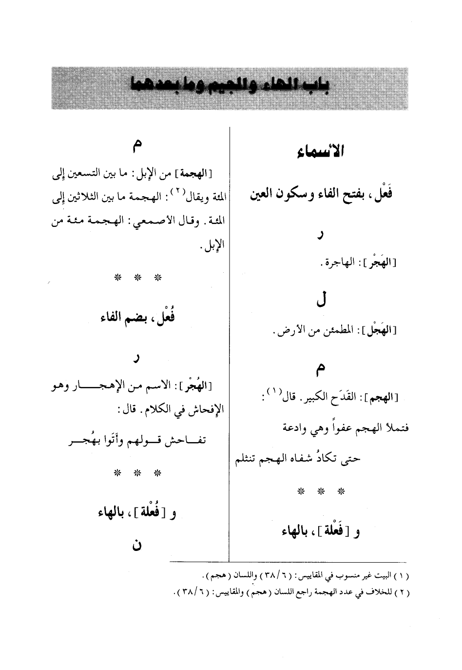 (2) للخلاف في عدد الهجمة راجع اللسان (هجم) والمقاييس: (6/ 38).