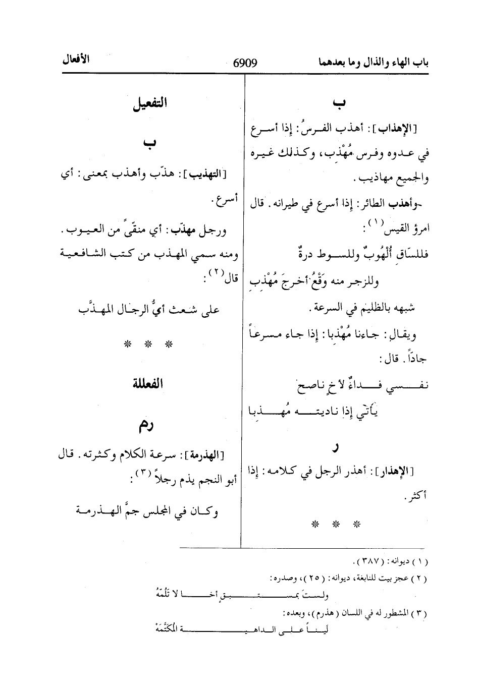 [التهذيب]: هذّب وأهذب بمعنى: أي أسرع.
