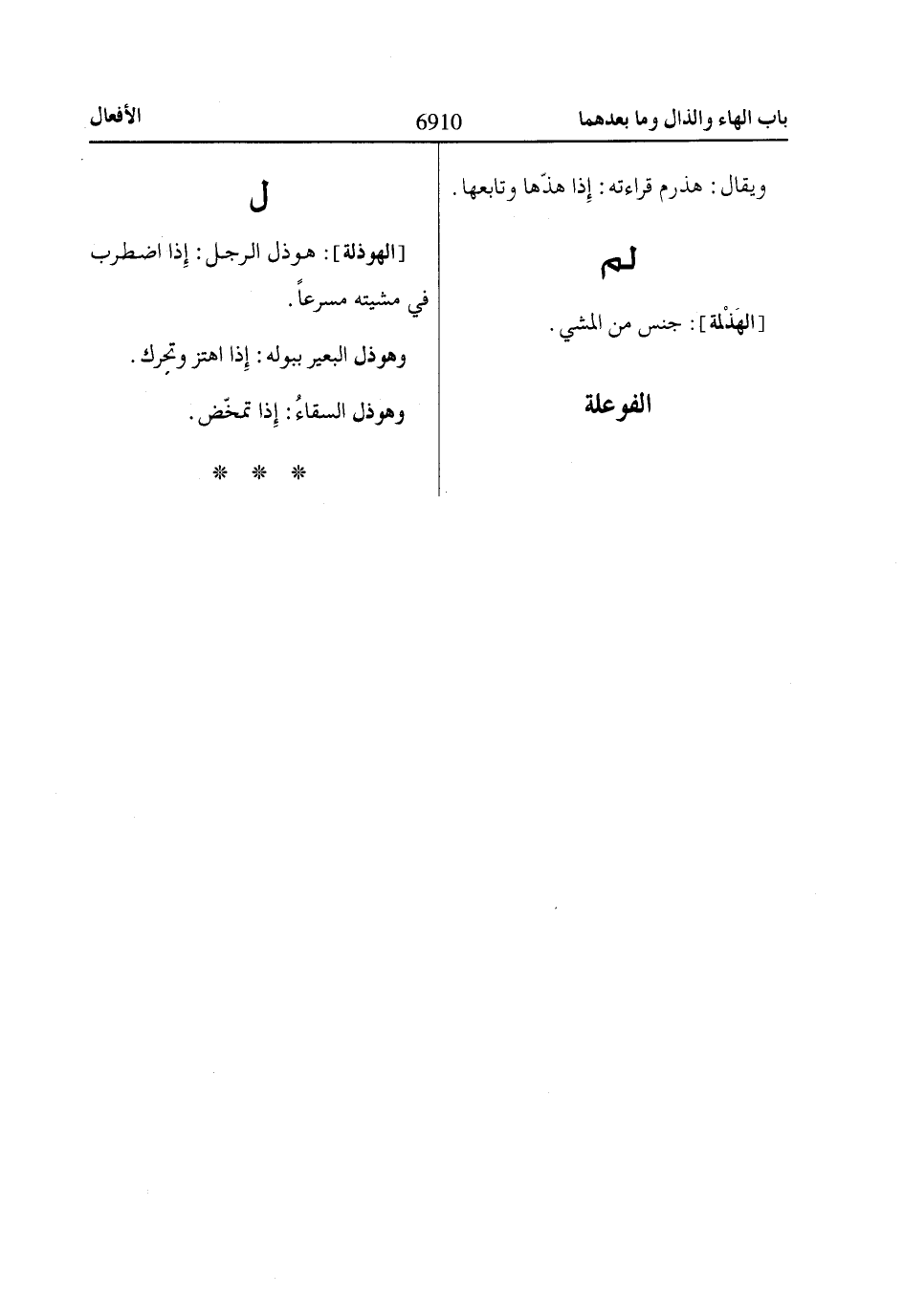 [الهوذلة]: هوذل الرجل: إِذا اضطرب في مشيته مسرعاً.