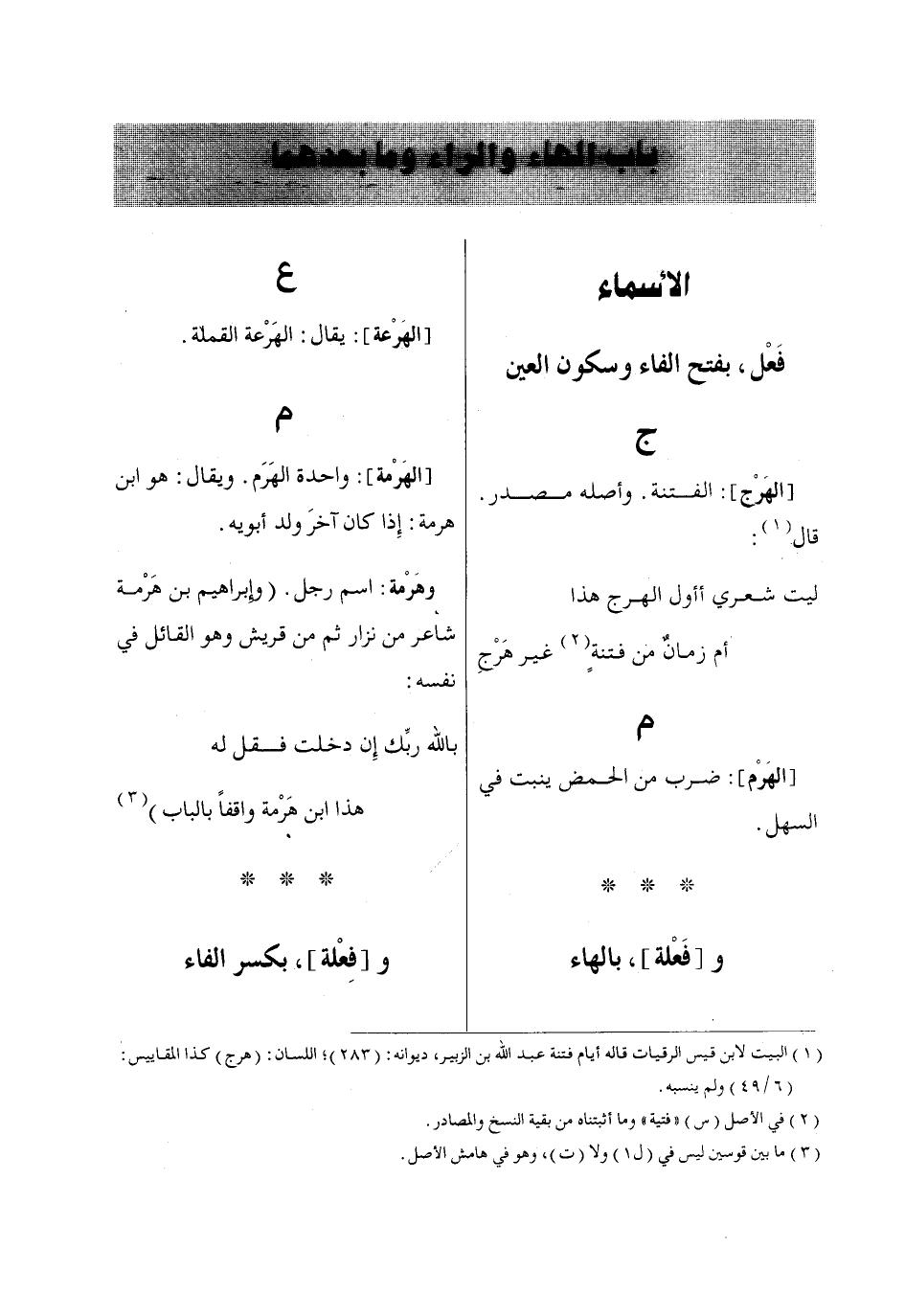 (1) البيت لابن قيس الرقيات قاله أيام فتنة عبد اللّاه بن الزبير، ديوانه: (283)؛ اللسان: (هرج) كذا المقاييس: