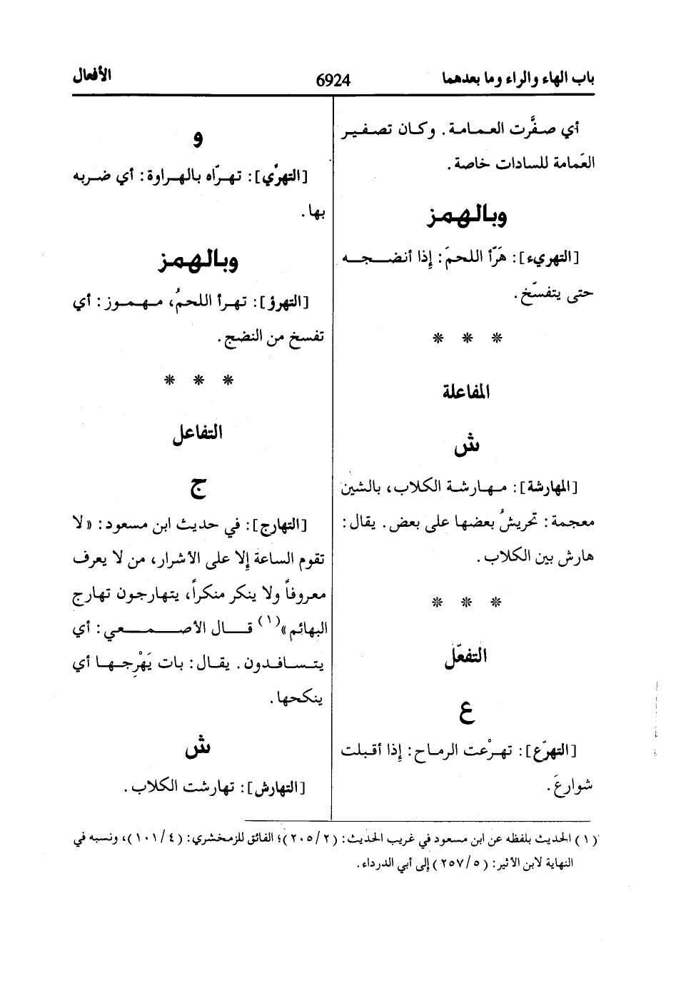 (1) الحديث بلفظه عن ابن مسعود في غريب الحديث: (2/ 205)؛ الفائق للزمخشري: (4/ 101)، ونسبه في النهاية لابن الأثير: (5/ 257) إِلى أبي الدرداء.