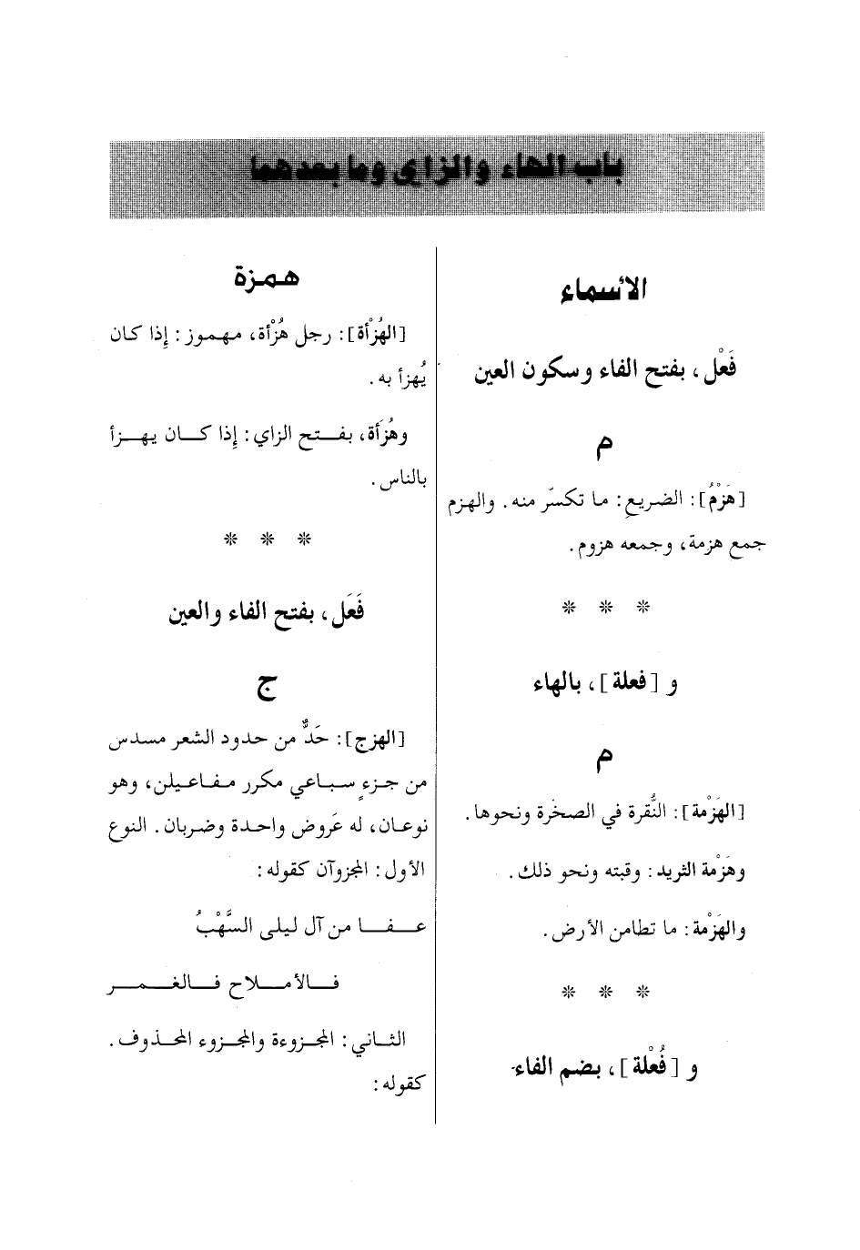 [هَزْمُ]: الضريعِ: ما تكسّر منه. والهزم جمع هزمة، وجمعه هزوم.