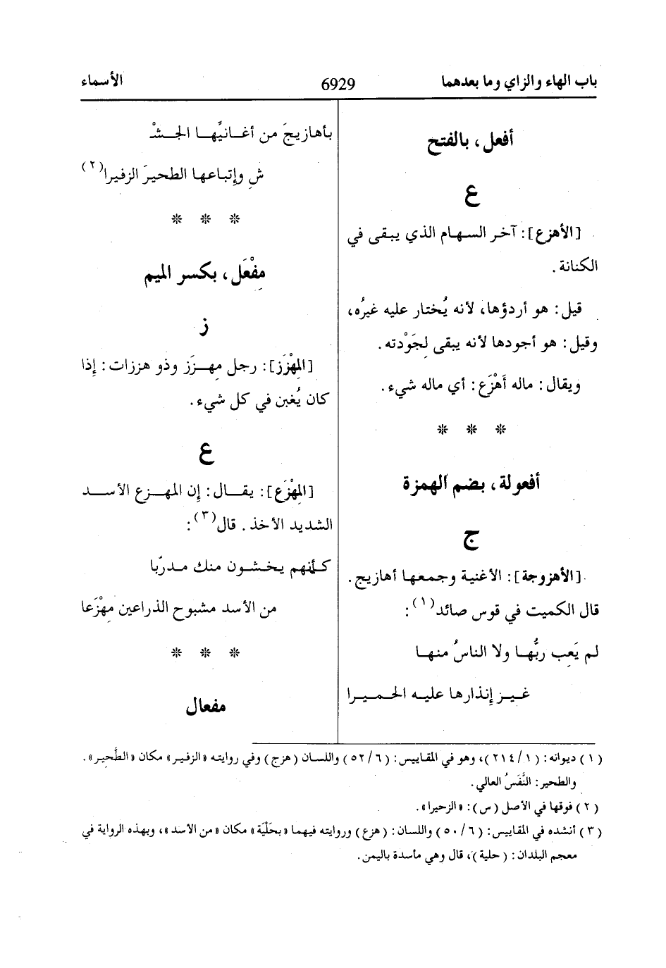 [المِهْزَع]: يقال: إِن المهزع الأسد الشديد الأخذ. قال «3»: