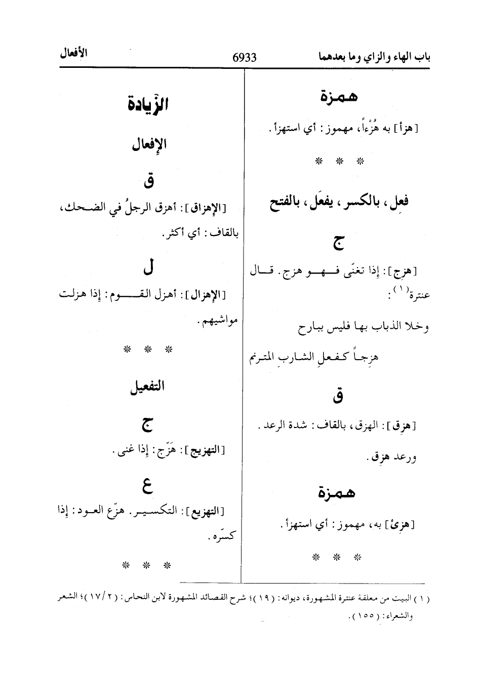 [هزِج]: إِذا تغنّى فهو هزج. قال عنترة «1»: