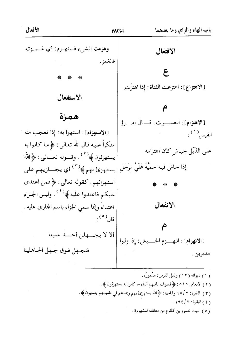 [الاستهزاء]: استهزأ به: إِذا تعجب منه منكراً عليه قال اللّاه تعالى: ماا كاانُوا بِهِ يَسْتَهْزِؤُنَ* «2». وقوله تعالى: اللّاهُ يَسْتَهْزِئُ بِهِمْ «3» أي يجازيهم على استهزائهم. كقوله تعالى: فَمَنِ اعْتَدى عَلَيْكُمْ فَاعْتَدُوا عَلَيْهِ «4». وليس الجزاء اعتداءً وإِنما سمي الجزاء باسم المجازى عليه.