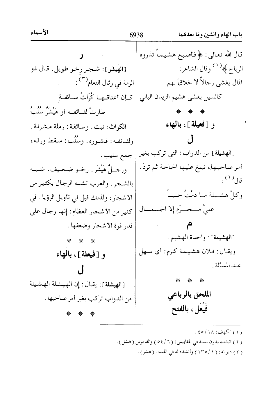 (2) أنشده بدون نسبة في المقاييس: (6/ 54) والقاموس (هشل).