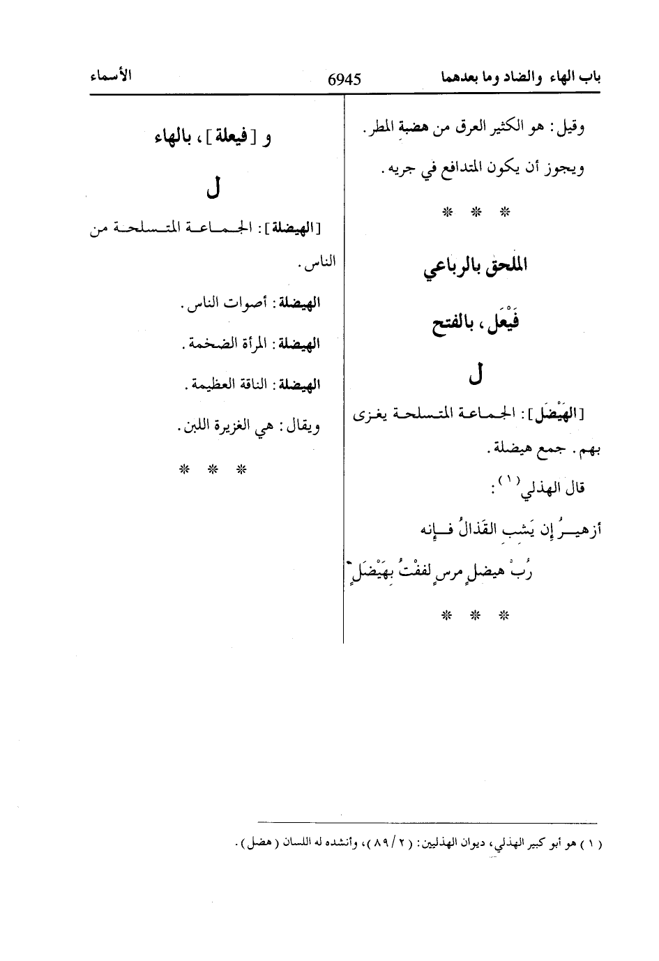 [الهَيْضَل]: الجماعة المتسلحة يغزى بهم. جمع هيضلة.