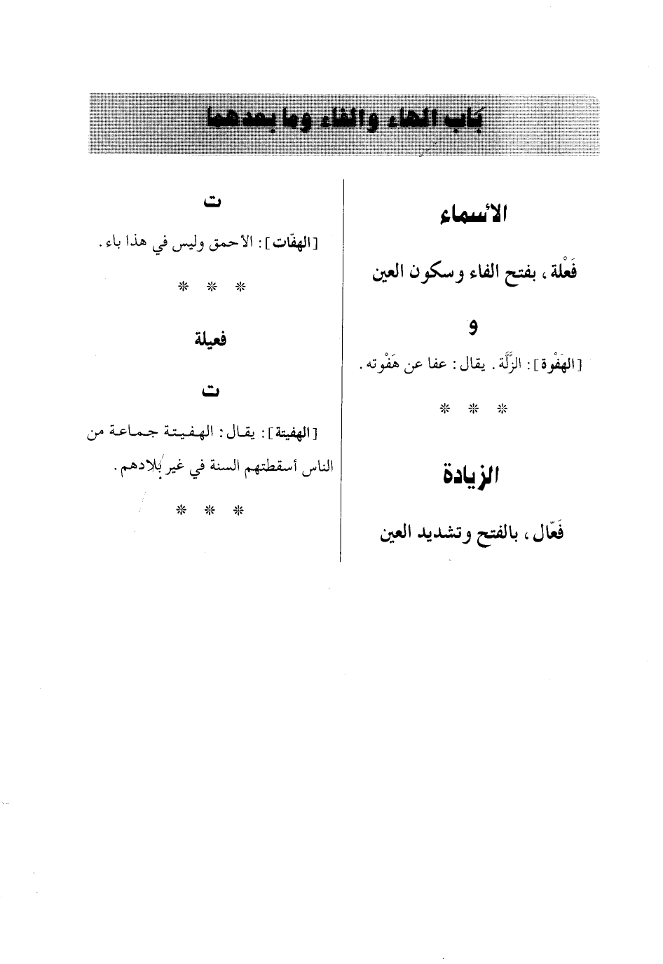 باب الهاء والفاء وما بعدهما