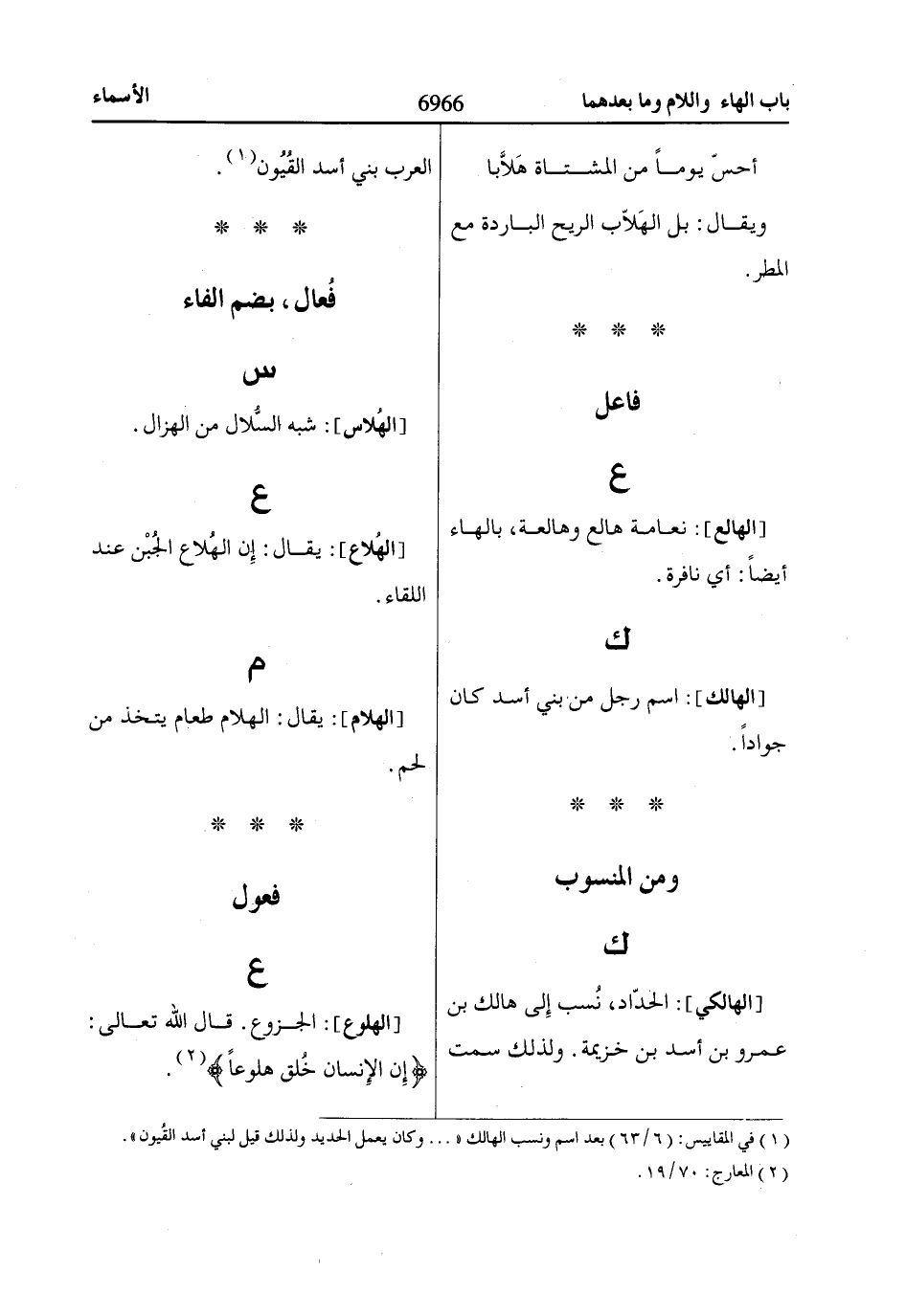 [الهالكي]: الحدّاد، نُسب إِلى هالك بن عمرو بن أسد بن خزيمة. ولذلك سمت العرب بني أسد القُيُون «1».