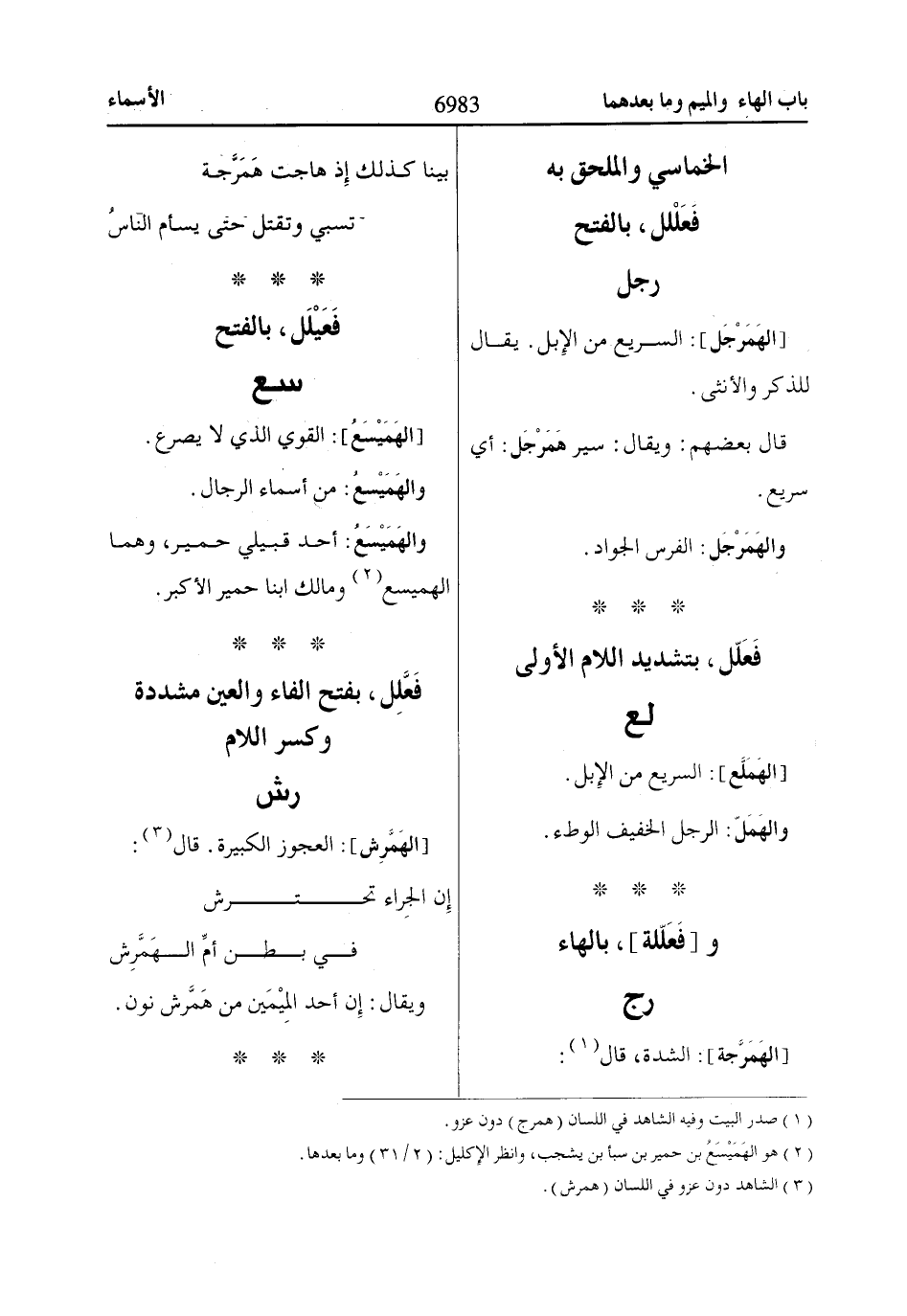 (3) الشاهد دون عزو في اللسان (همرش).