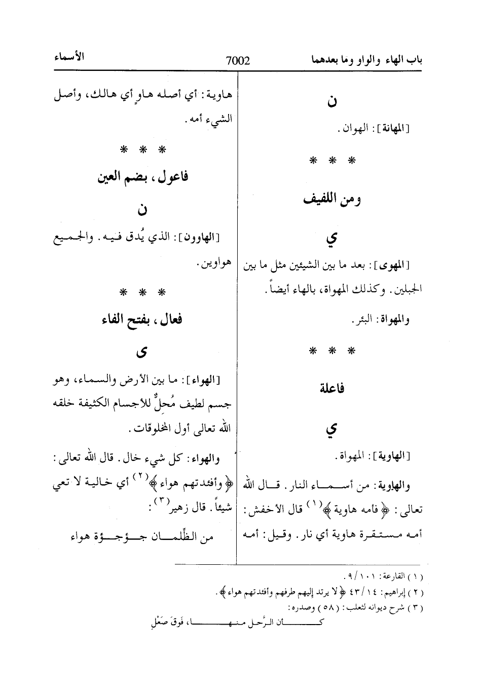 وَأَفْئِدَتُهُمْ هَوااءٌ «2» أي خالية لا تعي شيئاً. قال زهير «3»: