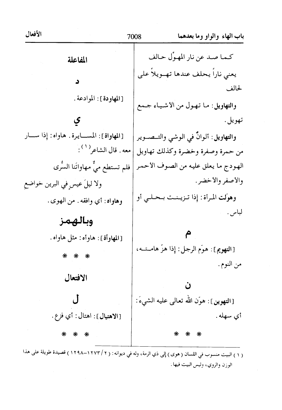 [المهاواة]: المسايرة. هاواه: إِذا سار معه. قال الشاعر «1»: