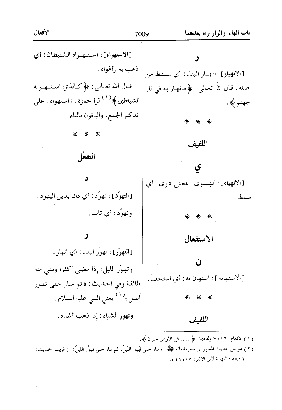 (2) هو من حديث المسور بن مخرمة بأنه صَلّى الله عَليه وسلم: «سار حتى ابْهار اللَّيلُ، ثم سار حتى تهوَّر الليلُ». (غريب الحديث: