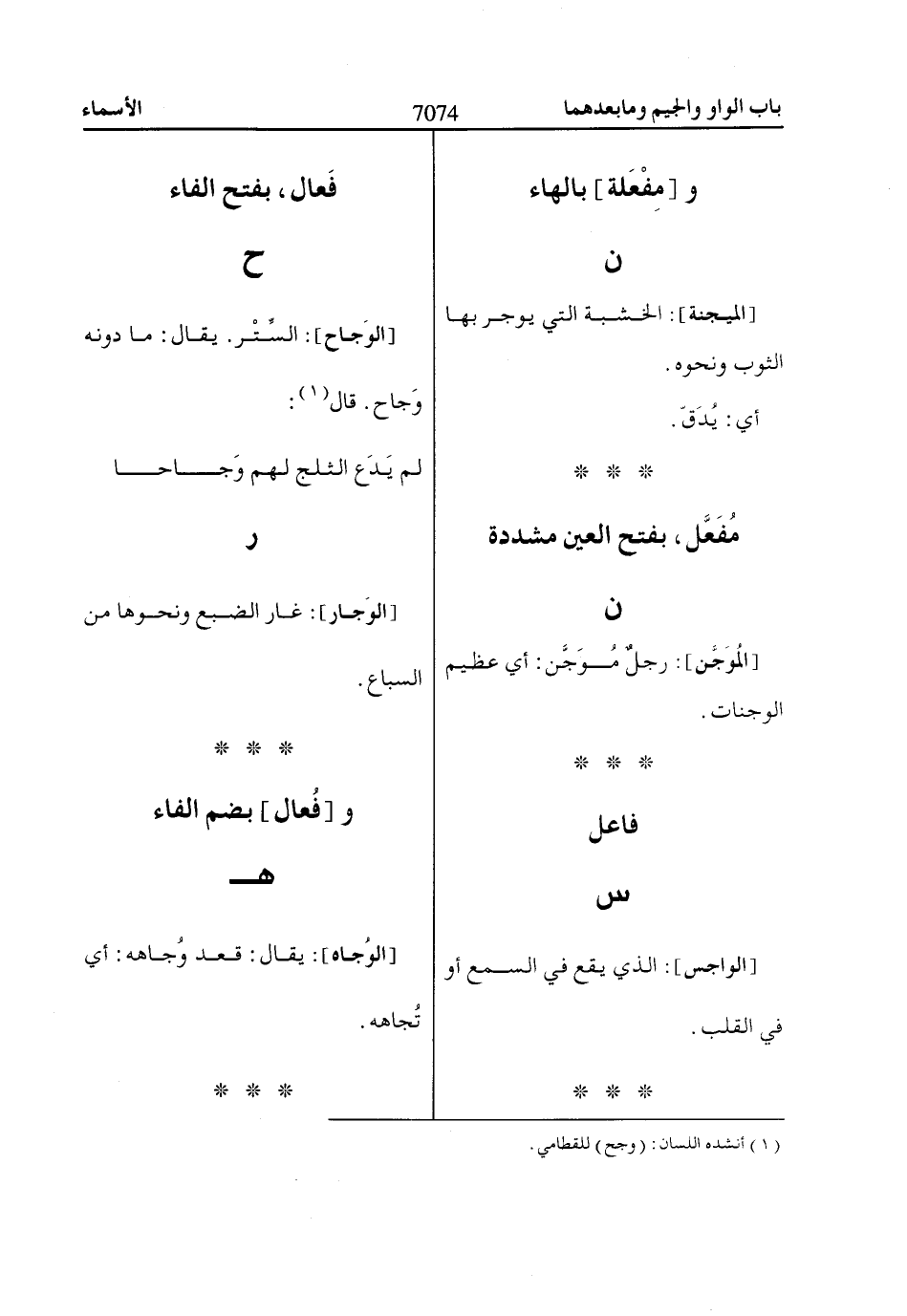 [الوَجاح]: السِّتْر. يقال: ما دونه وَجاح. قال «1»: