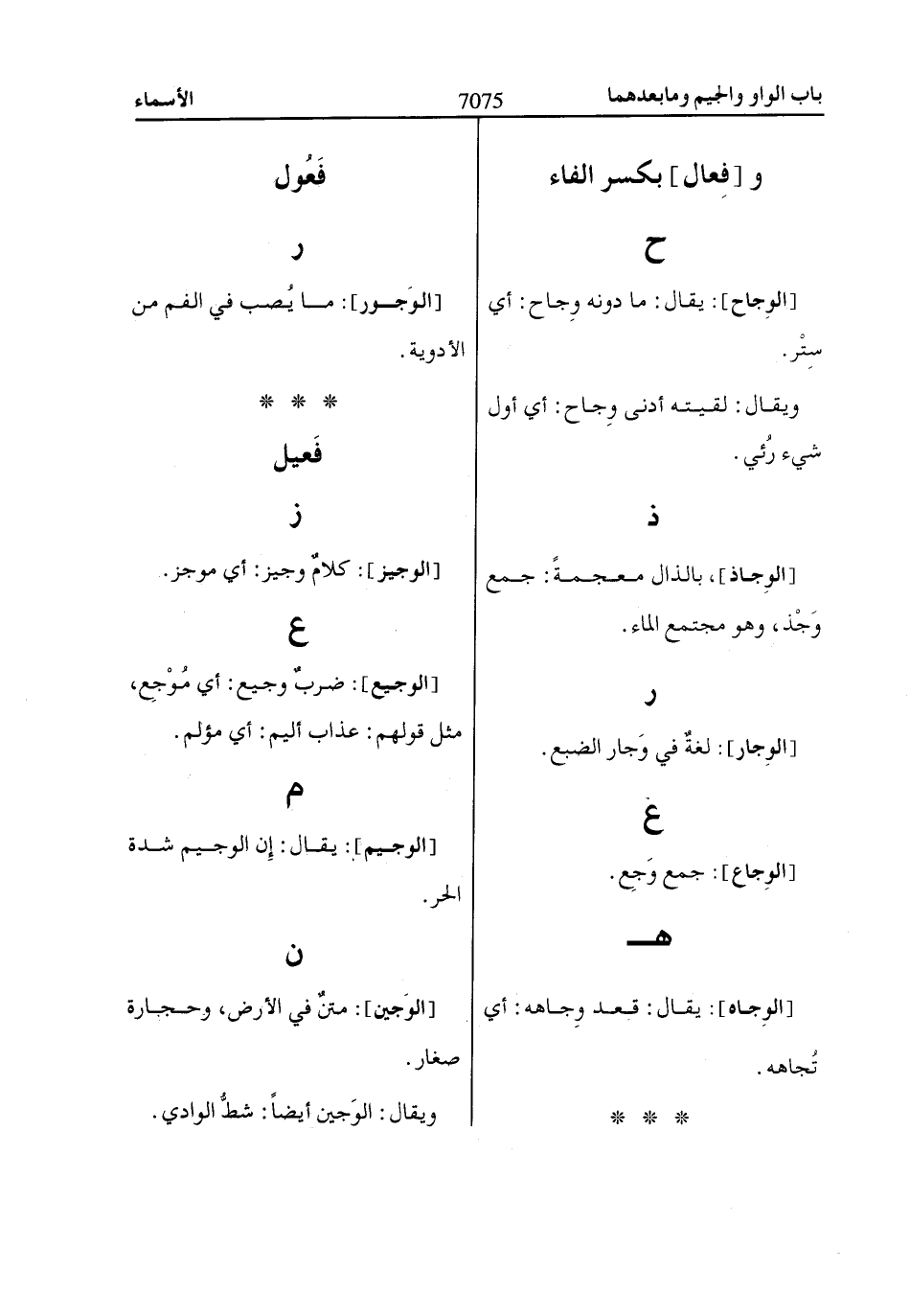 [الوِجاذ]، بالذال معجمةً: جمع وَجْذ، وهو مجتمع الماء.