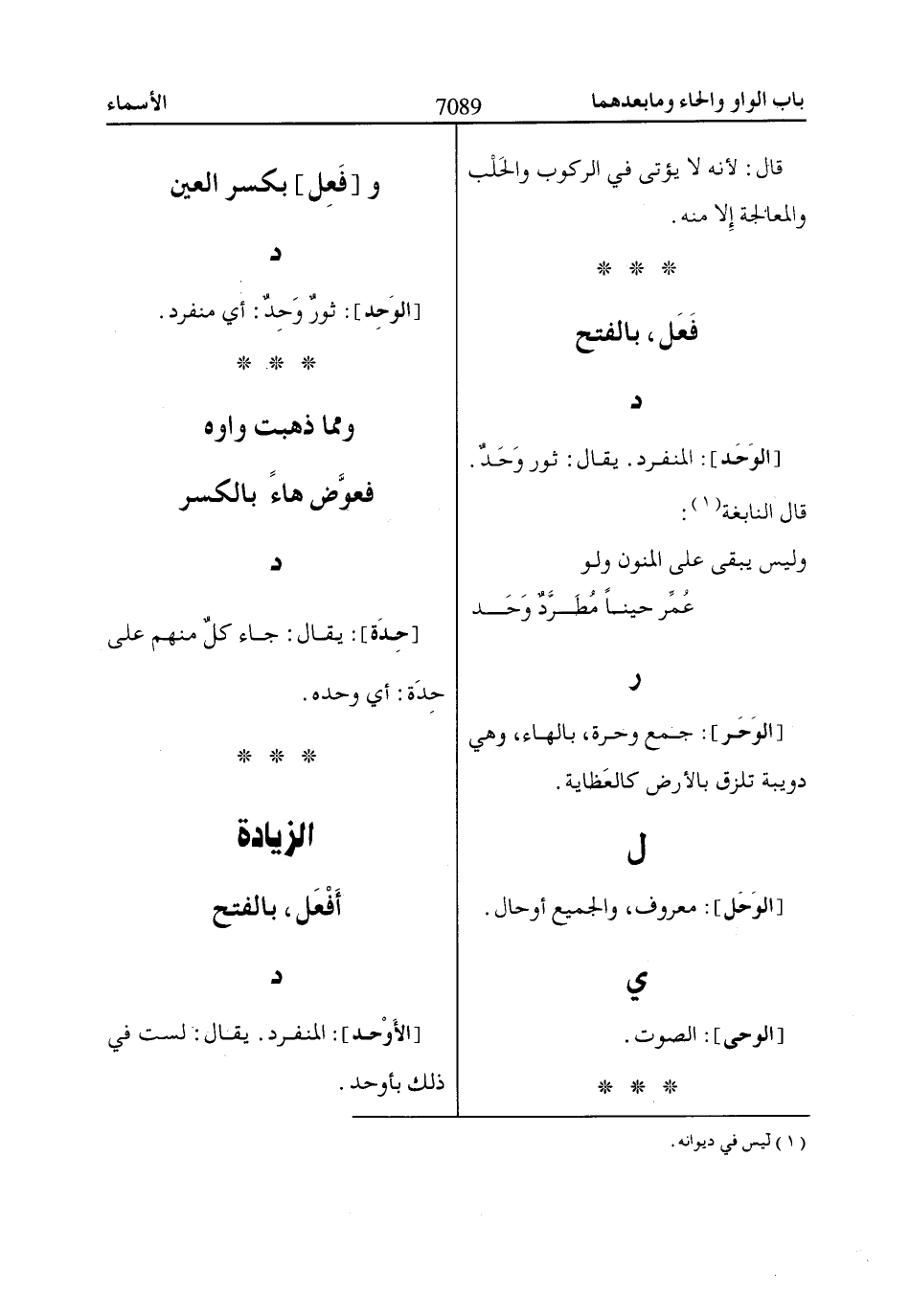 [الوَحَد]: المنفرد. يقال: ثور وَحَدٌ.