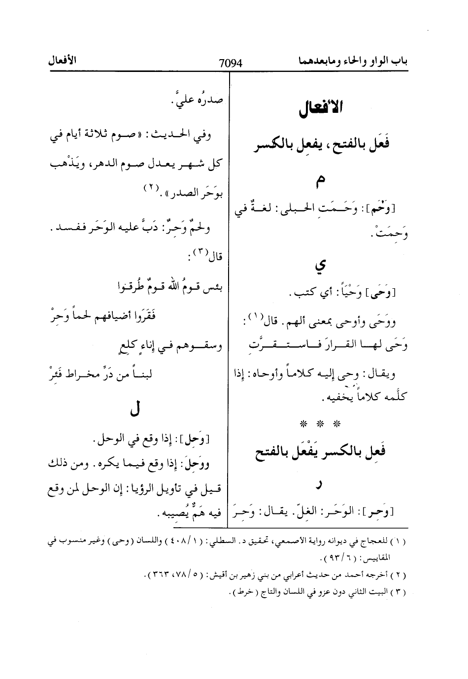 (1) للعجاج في ديوانه رواية الأصمعي، تحقيق د. السطلي: (1/ 408) واللسان (وحى) وغير منسوب في المقاييس: (6/ 93).