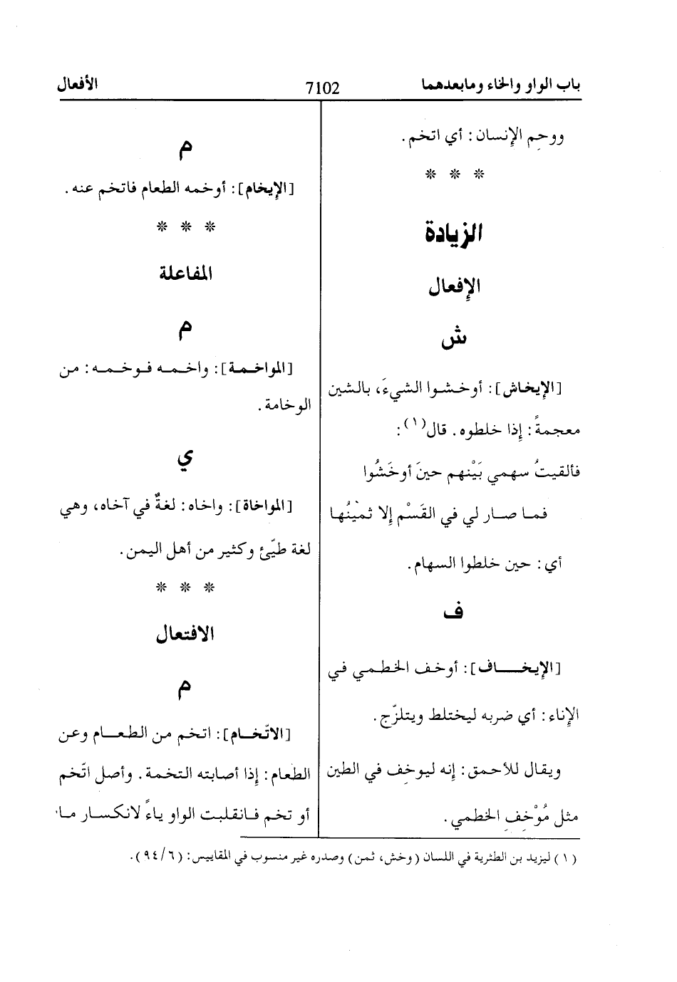 [الإِيخاف]: أوخف الخطمي في الإِناء: أي ضربه ليختلط ويتلزّج.