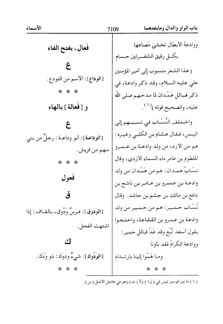 (هذا الشعر منسوب إِلى أمير المؤمنين علي عليه السلام، وقد ذكر وادعة، في ذكر قبائل هَمْدان لما مدحهم صلى اللّاه عليه، والصحيح قوله) «1».