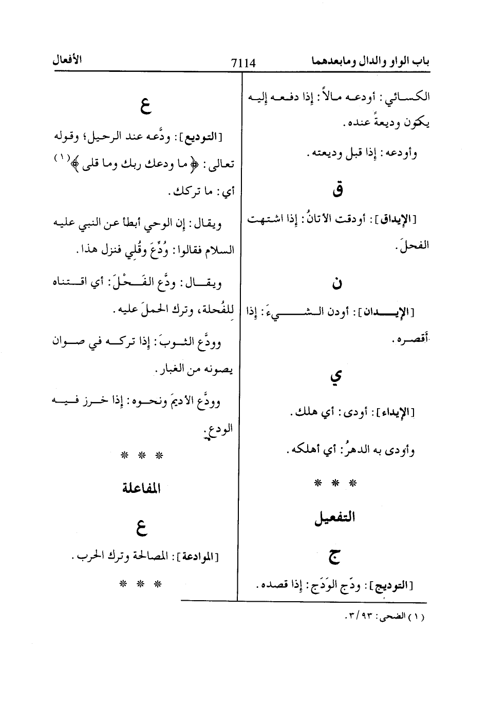 [التوديع]: ودَّعه عند الرحيل؛ وقوله تعالى: ماا وَدَّعَكَ رَبُّكَ وَماا قَلى «1» أي: ما تركك.