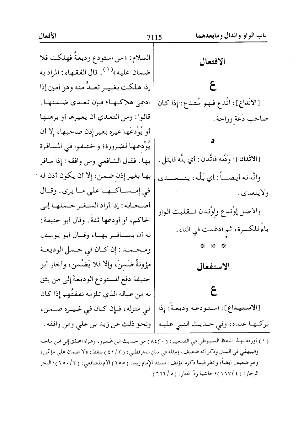 وفي حديث النبي عليه السلام: «من استودع وديعةً فهلكت فلا ضمان عليه» «1».