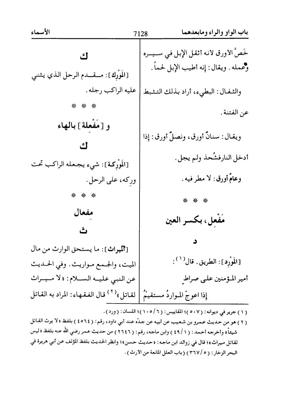 [المَوْرِد]: الطريق. قال «1»: